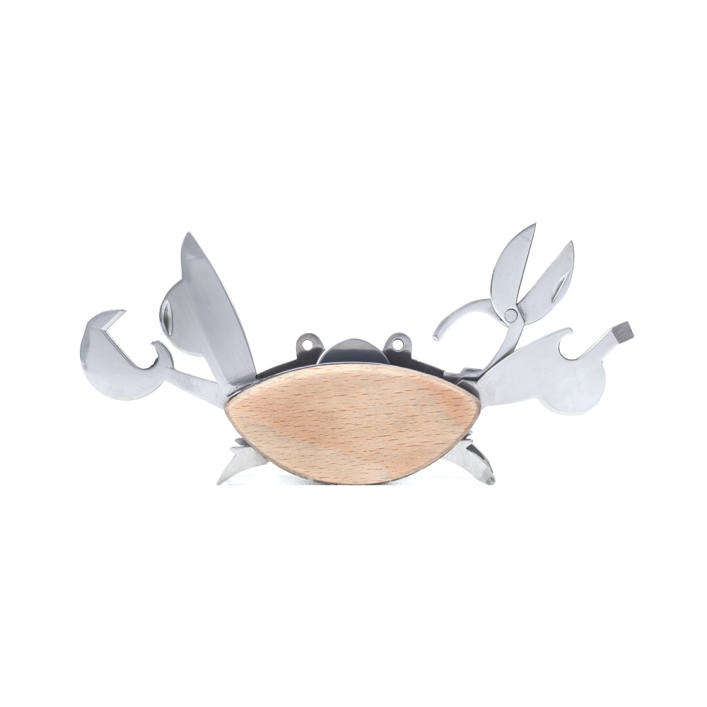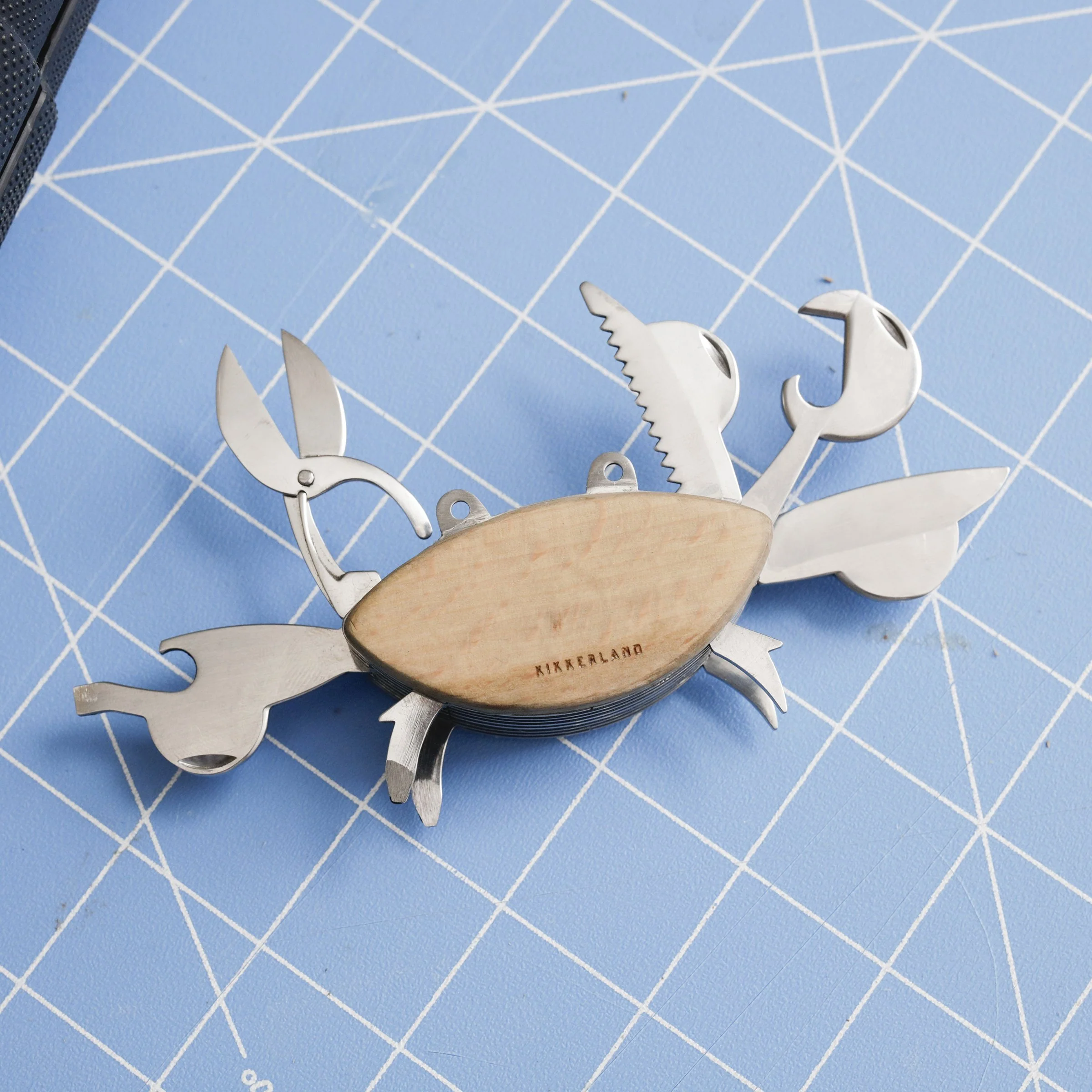 The Kikkerland “Crab Multi‑Tool” is a quirky, crab‑shaped multi-tool designed for both style and function. Grip its beechwood shell to deploy its stainless-steel appendages — including a mini scissor, bottle opener, screwdriver, can opener, mini knife, and rope saw.