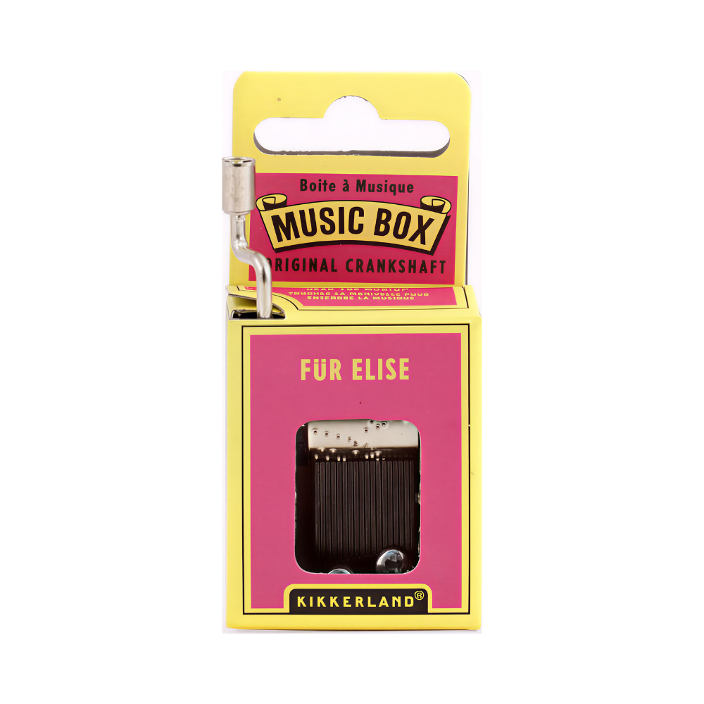 The Kikkerland “Für Elise” Hand-Crank Music Box is a charming and classic novelty item that brings the iconic piano melody to life with a simple hand crank. Compact and lightweight, it’s perfect for display on a desk, shelf, or tabletop, adding a whimsical and musical touch to any space.