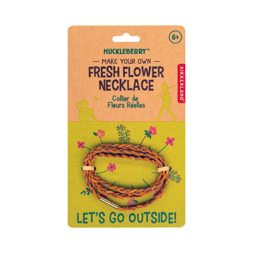 The Kikkerland Huckleberry Make Your Own Fresh Flower Necklace lets you pick your own flowers or leaves and thread their stems through a soft leather strap to make a living, wearable necklace. Its magnetic copper closure keeps it secure, making it perfect for nature walks, festivals, or simply celebrating the outdoors.