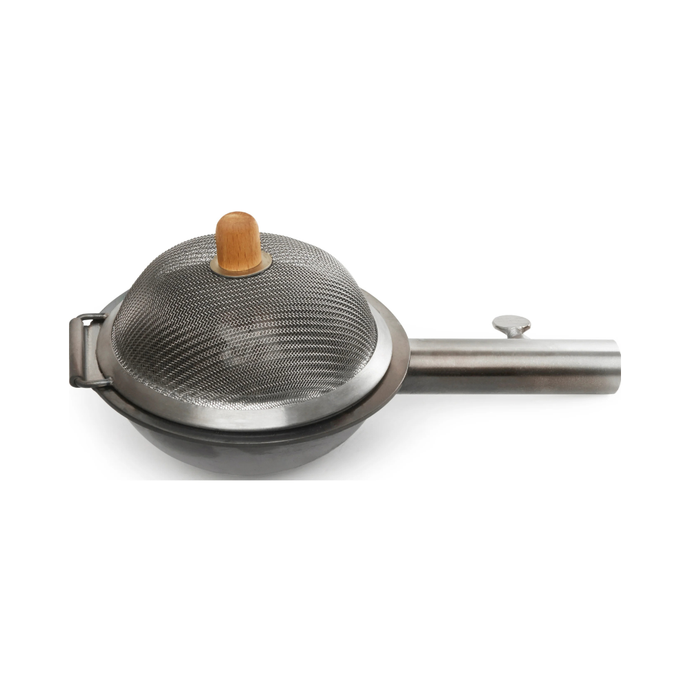 The Kikkerland Huckleberry Popcorn Maker is a campfire-style popcorn popper made to create fresh, smoky popcorn over a fire. Simply attach a stick or dowel (not included), add a tablespoon of oil and two tablespoons of kernels, then hold and shake the popper over the flames. Once the popping slows, remove it carefully and enjoy.