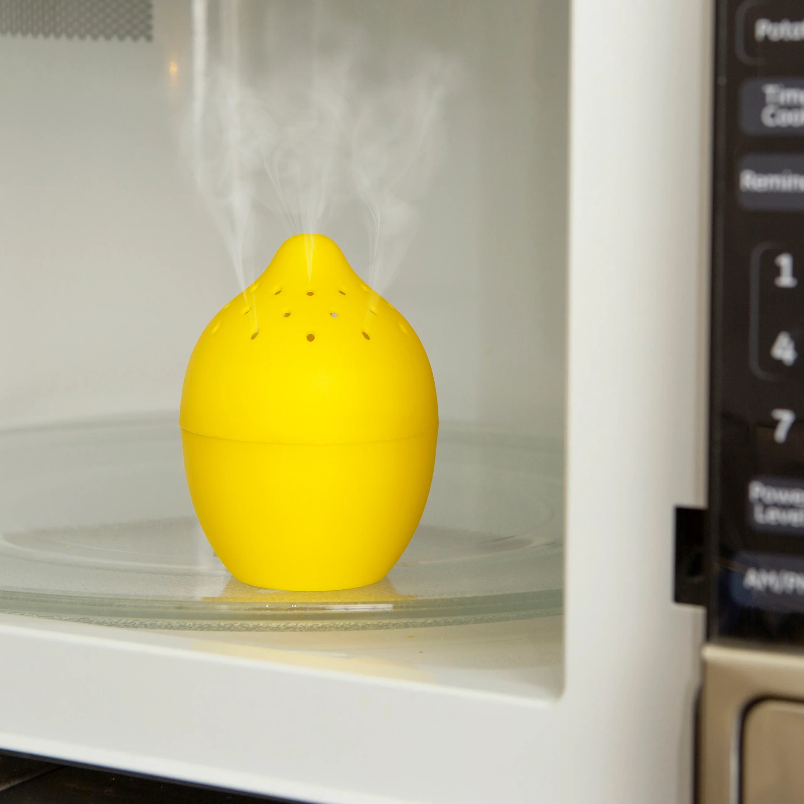 The Kikkerland Lemon Microwave Cleaner is a lemon‑shaped container you fill with water and vinegar, then microwave for a few minutes to create steam that loosens food splatters. It helps clean your microwave with minimal effort and adds a cheerful touch to your kitchen.