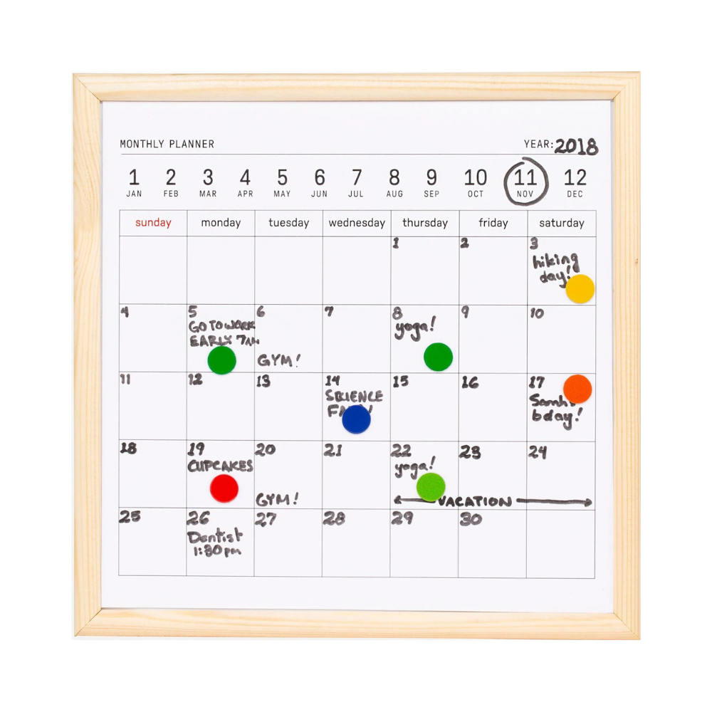 The Kikkerland Mini Whiteboard Calendar is a reusable monthly planner that helps you track your schedule without wasting paper. It includes a dry‑erase marker, color‑coding magnetic buttons, and can either stand on a desk or be hung on the wall.