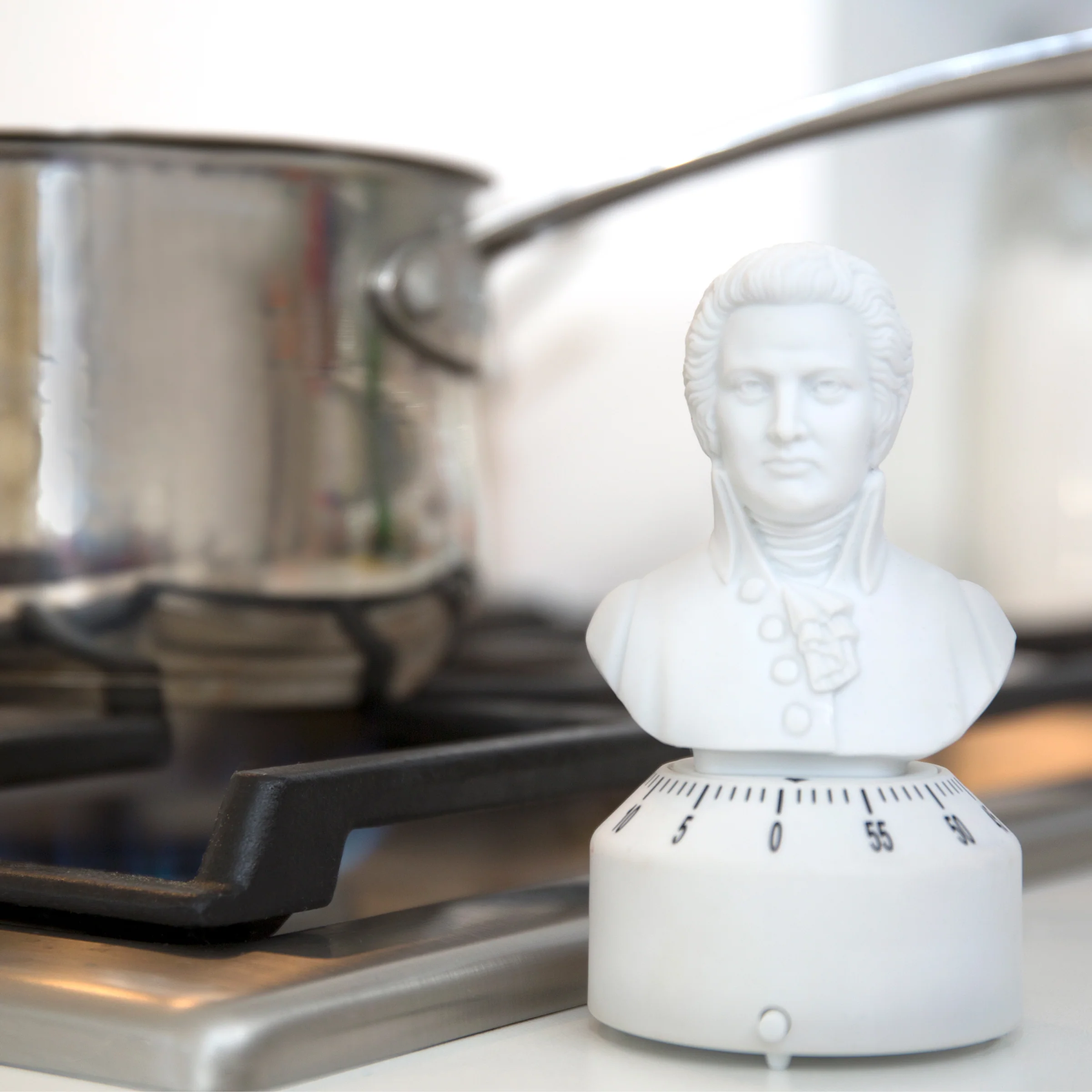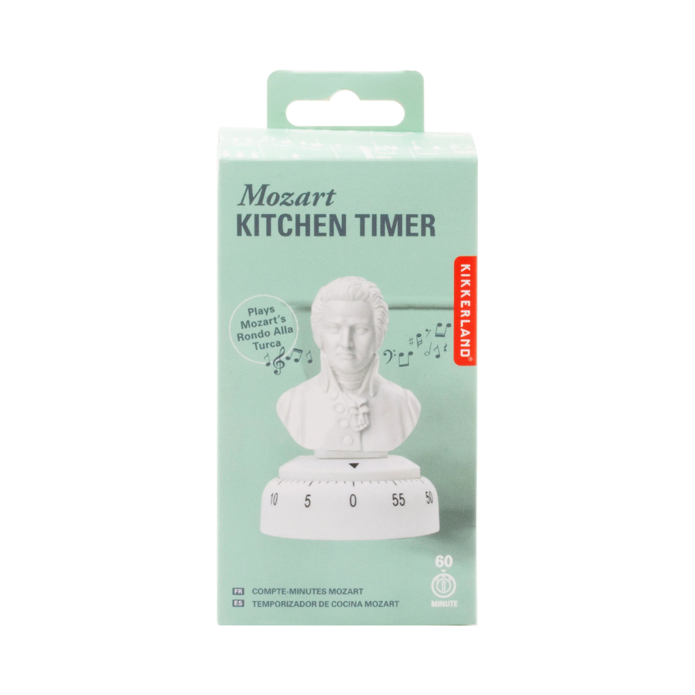 The Kikkerland Mozart Kitchen Timer is a 60‑minute wind-up timer shaped like Mozart’s head. When the timer hits zero, it plays Mozart’s “Rondo Alla Turca”, making your cooking experience feel like a mini classical concert.