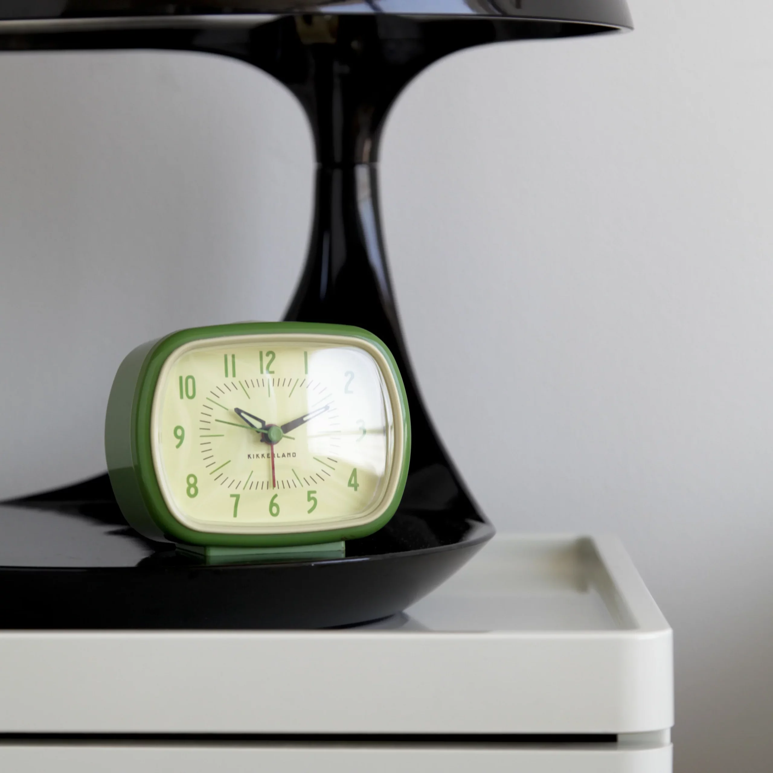The Kikkerland Retro Alarm Clock – Green combines vintage charm with modern practicality. Featuring a classic analog design in a vibrant green plastic case, this small desk clock offers a glow-in-the-dark face, easy-to-read numbers, and a traditional beeping alarm — ideal for your bedside or workspace.