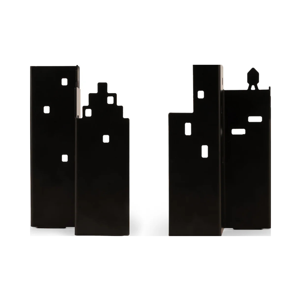 The Kikkerland “Skyline Bookends” are a pair of sturdy, powder‑coated steel bookends that evoke an urban cityscape. Designed to look like a skyline, they bring architectural elegance to your bookshelf while keeping your books upright and organized.