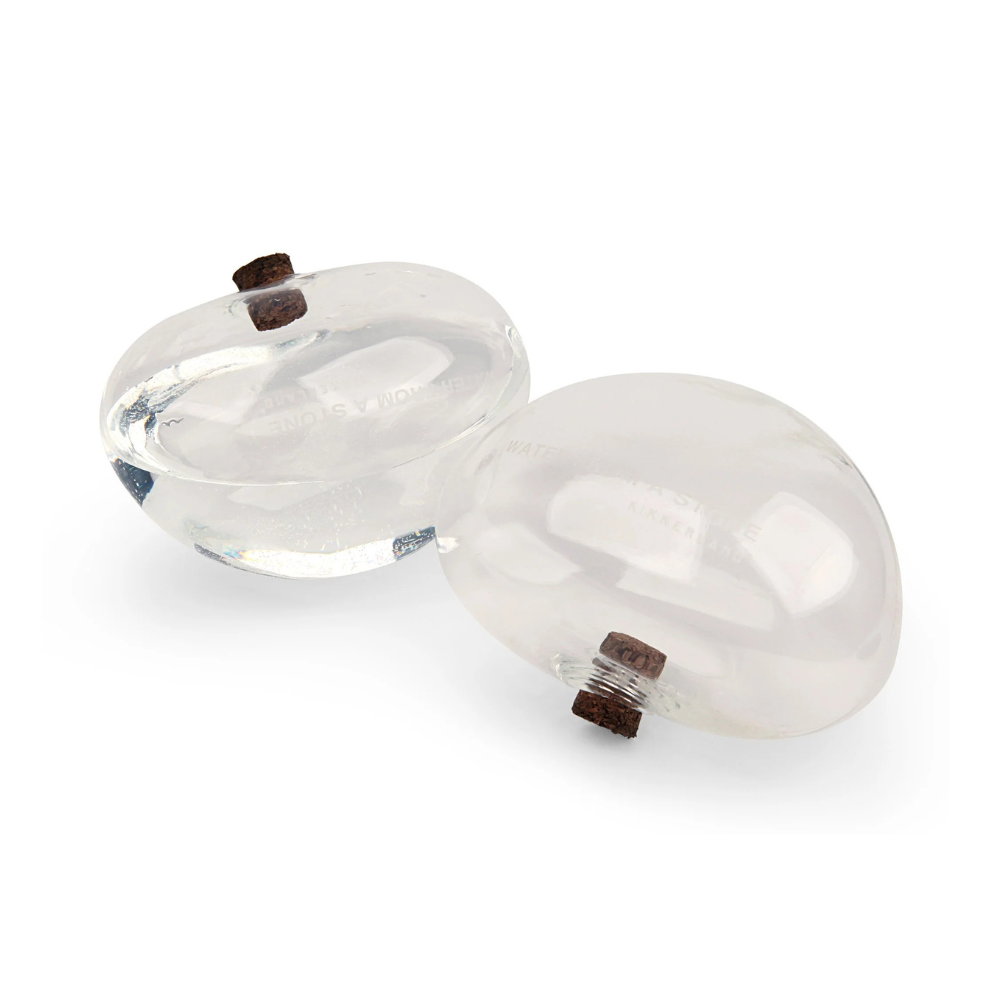 The Kikkerland Water From a Stone is a self‑watering glass “stone” that slowly releases water into your plant pot over 3–4 days. Fill it with water, place it in your planter (cork-side down), and let it drip gently — great for plant care when you’re busy or away.