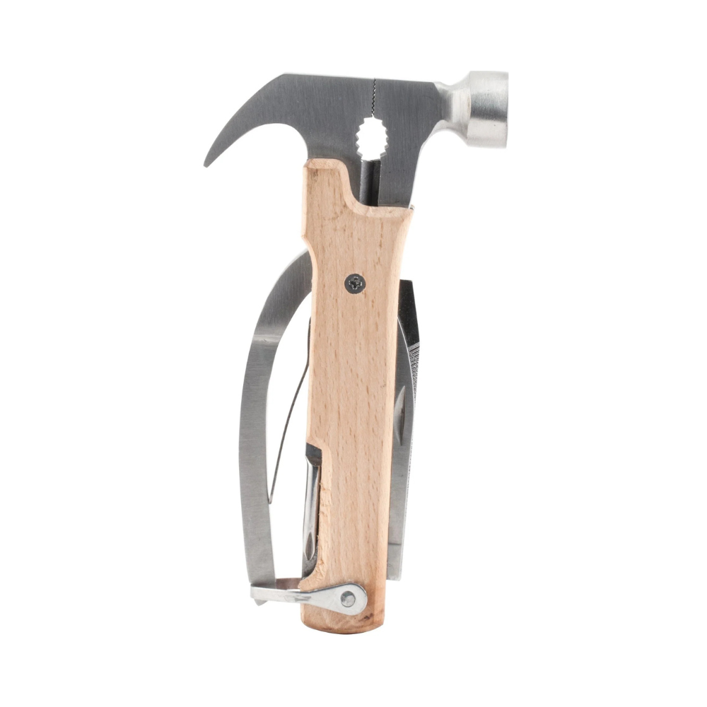 The Kikkerland Wooden Hammer Multi‑Tool is a compact, 10‑in‑1 tool combining a hammer with multiple handy functions. With a beech‑wood handle and fold-out stainless steel tools, this multitool is great for small repairs, DIY, and everyday tasks.