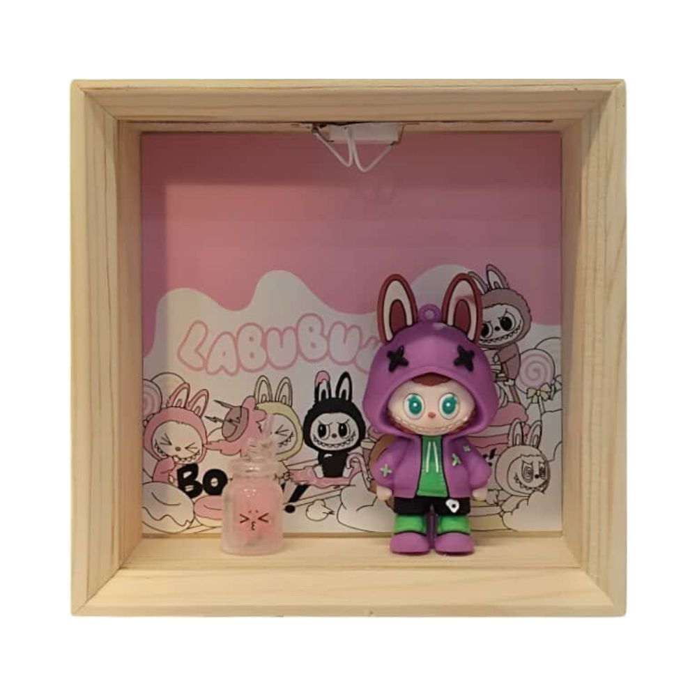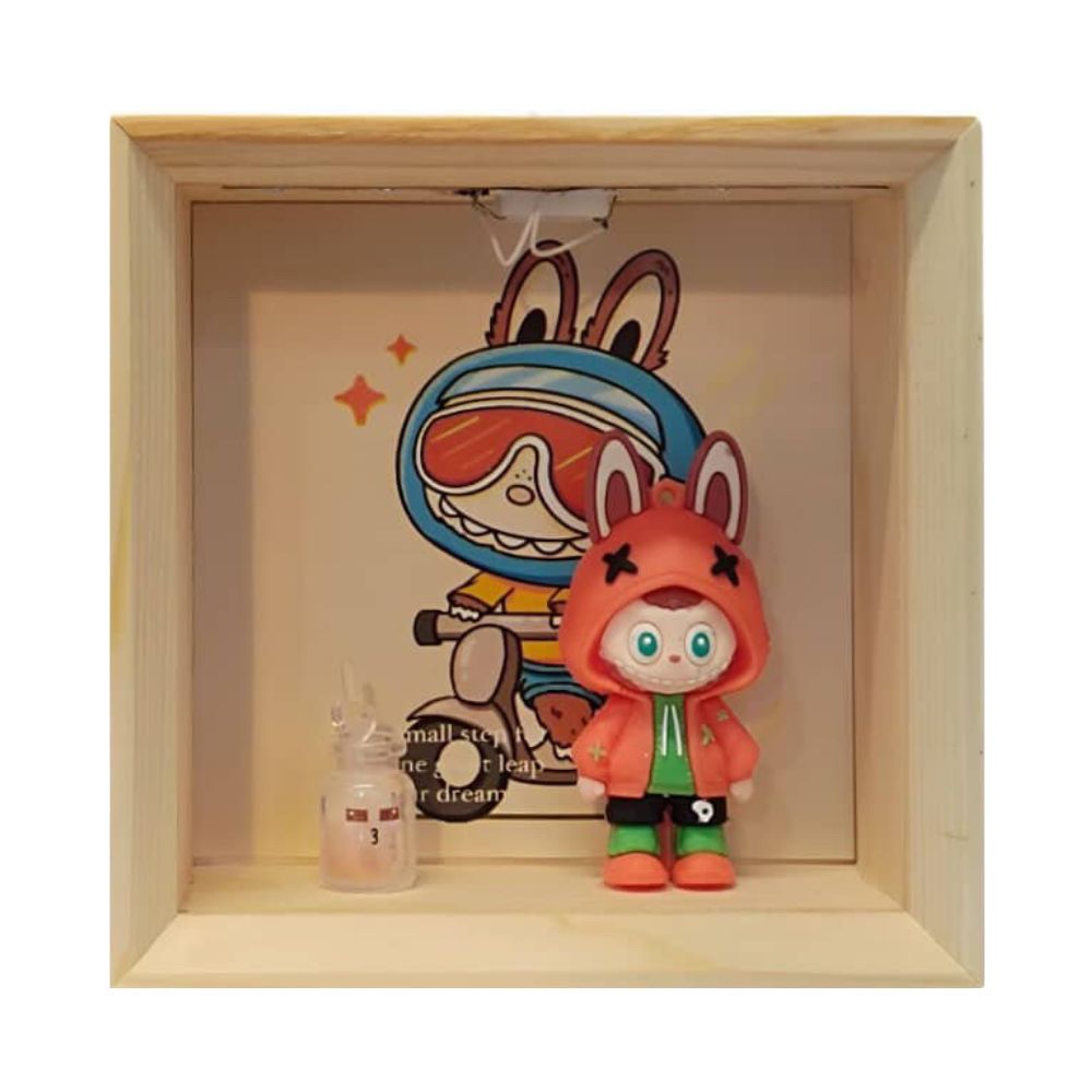 The Labubu Light Up Frame is a playful and modern collectible that captures the quirky charm of the beloved Labubu character. Displayed inside a natural wooden frame, this piece features a detailed 3D Labubu figurine wearing a bright orange bunny hoodie and green outfit, paired with a miniature bottle accessory for added personality. The background illustration complements the design with its cheerful color palette and inspirational message. When illuminated, the built-in LED light enhances the display, creating a soft and inviting glow perfect for any room. Ideal for collectors, art toy enthusiasts, or anyone who enjoys imaginative and creative décor.
