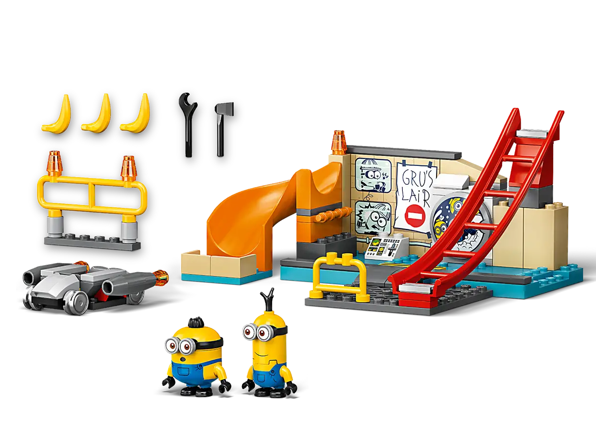 The LEGO® 75546 Minions in Gru’s Lab set, released in 2021, is an 87-piece set designed for young builders aged 4 and up. Inspired by *Minions: The Rise of Gru*, the set allows children to recreate the mischievous antics of the Minions in Gru’s underground laboratory. It features a slide, ramp, and a toy vehicle, and includes two Minion figures — Kevin and Otto — along with accessories such as bananas, tools, and a fence, enhancing imaginative play. The compact build measures approximately 8 cm (3″) high, 17 cm (6″) wide, and 13 cm (5″) deep.
