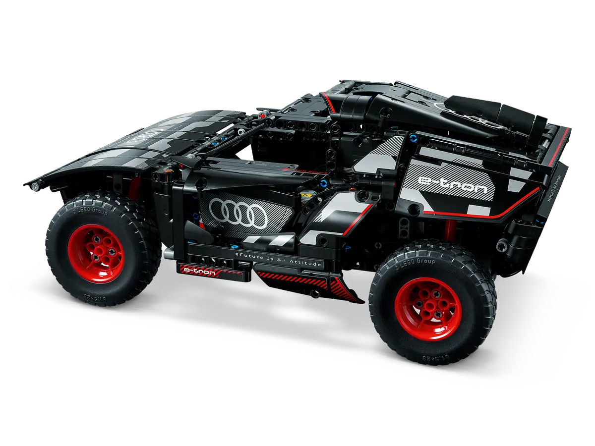 The LEGO® Technic Audi RS Q e-tron (42160) is a 914-piece set for builders aged 10 and up. It models the electric rally car used in the Dakar Rally and can be controlled remotely via the CONTROL+ app for forward, reverse, and steering. The set features realistic engineering details, including independent suspension on all four wheels and a specially designed Technic wheel element.