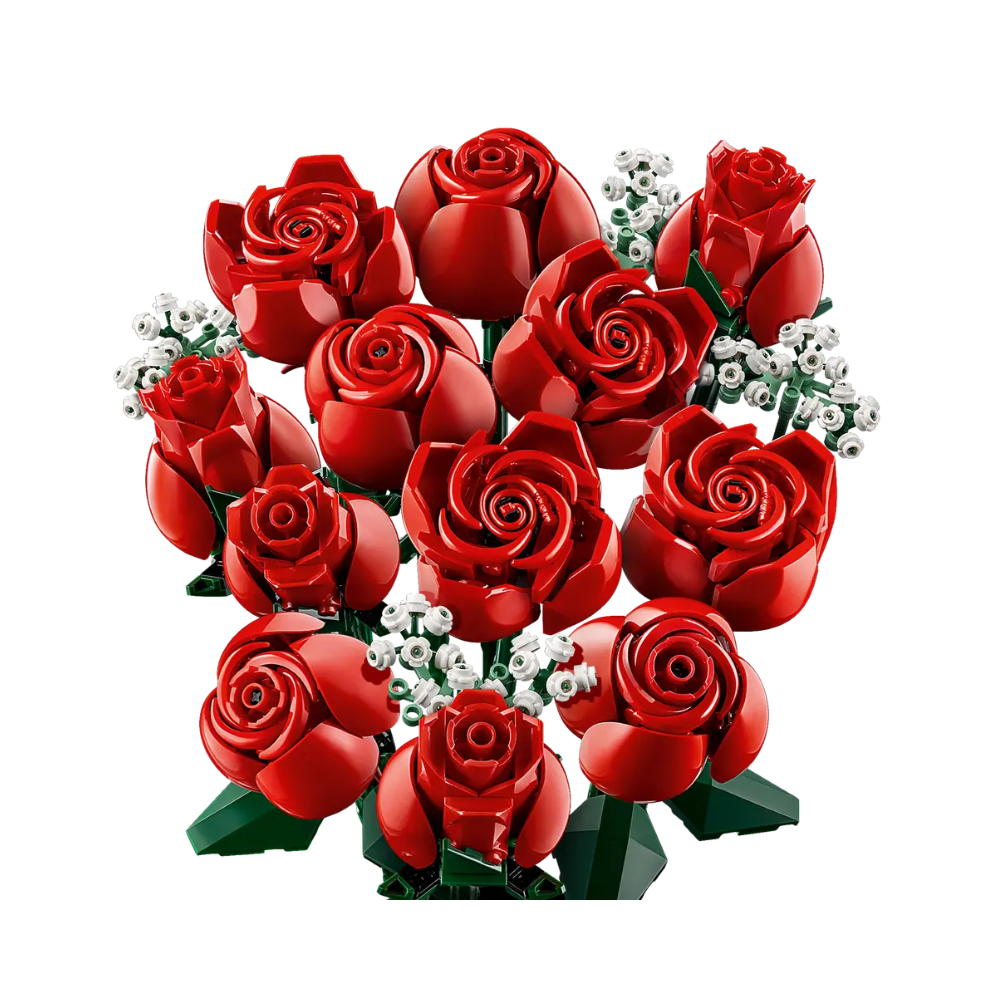 The LEGO® Icons / Botanical Collection Bouquet of Roses (10328) is a relaxing and elegant build for adults (18+). With 822 pieces, it lets you create a dozen red roses — 4 in full bloom, 4 blooming, and 4 buds — along with four sprigs of baby’s breath. The stems are long and poseable, so you can display the bouquet in a vase of your choice.