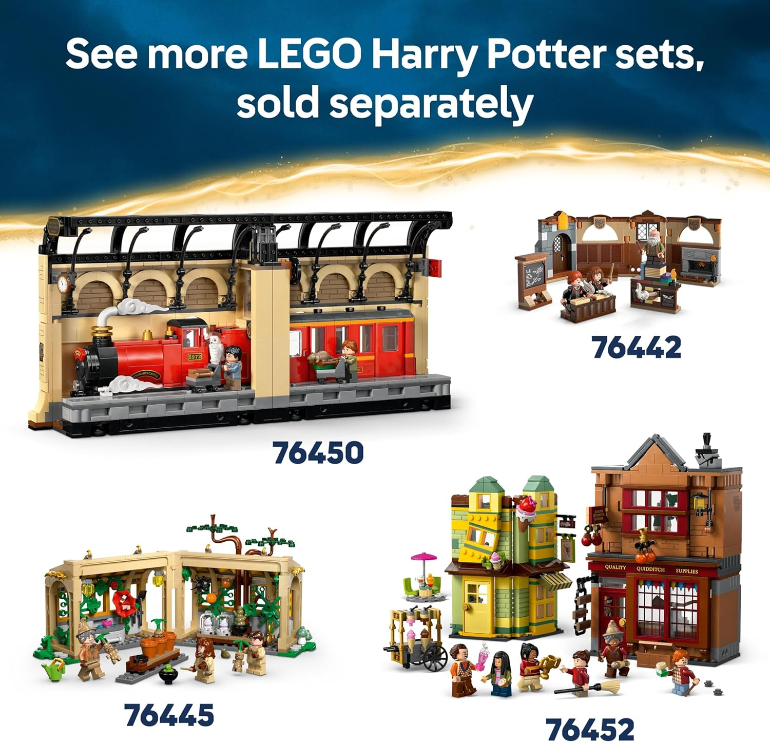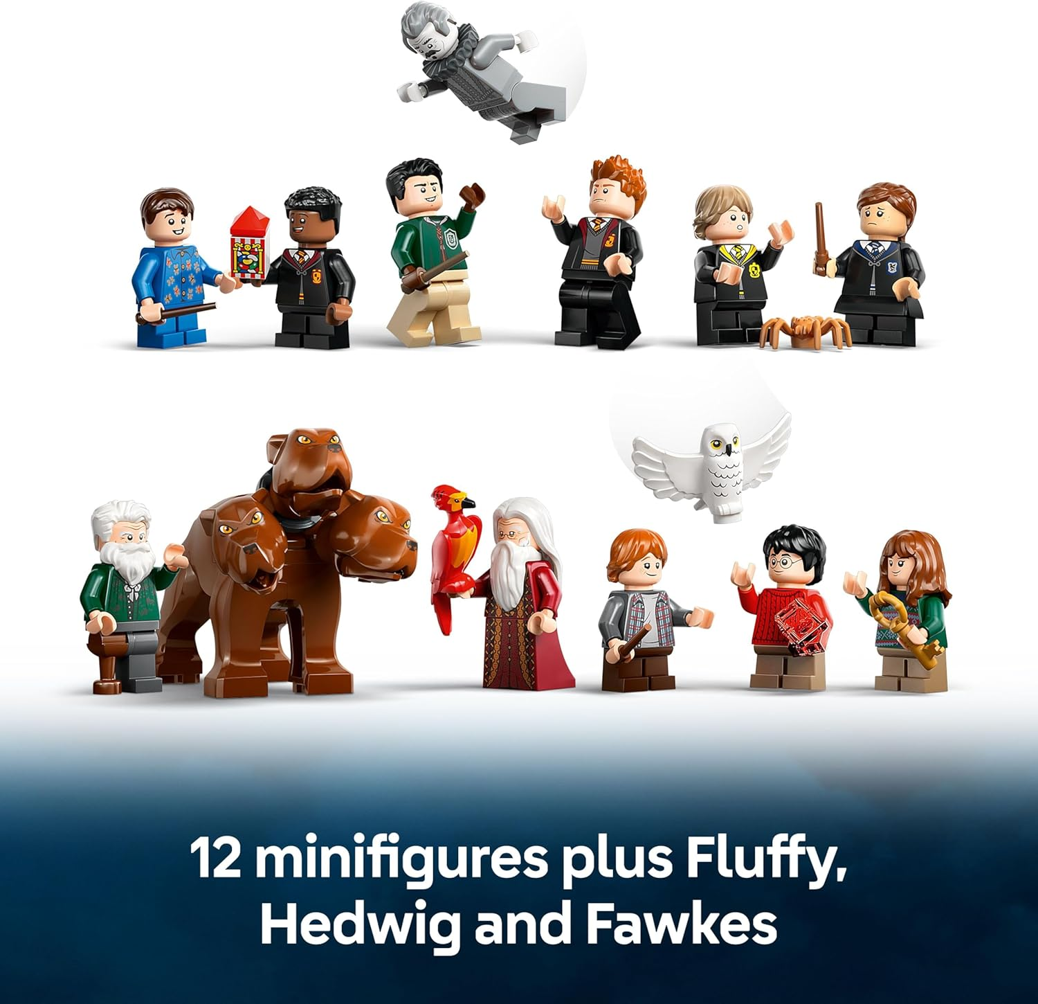 | Minifigures | 12 characters including Harry Potter, Hermione, Neville, Professor Kettleburn, Nearly Headless Nick, Dumbledore, Fluffy, Hedwig, Fawkes |