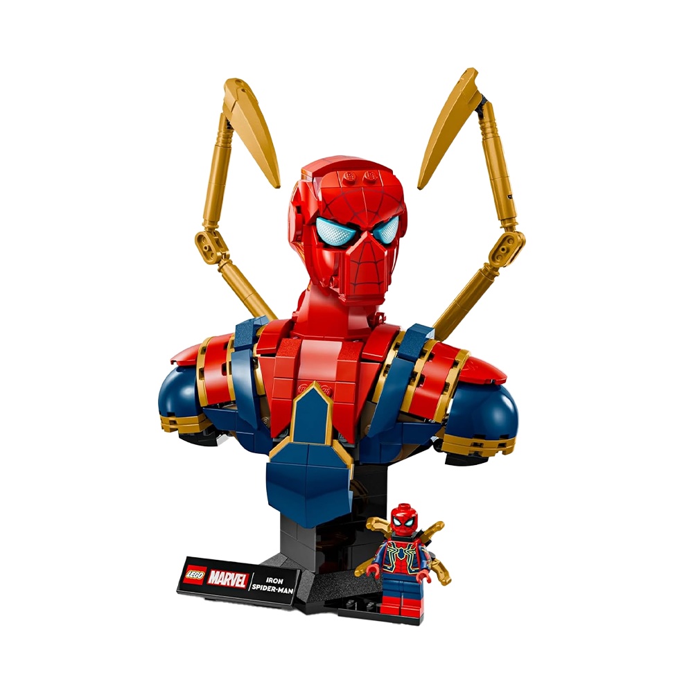 The LEGO® Marvel Iron Spider-Man (76326) is a detailed build-and-display collectible set designed for adult Super Hero enthusiasts and experienced LEGO builders. This Iron Spider-Man bust features Spider-Man wearing his iconic Iron Man armor, complete with two movable mechanical arms for dynamic posing.