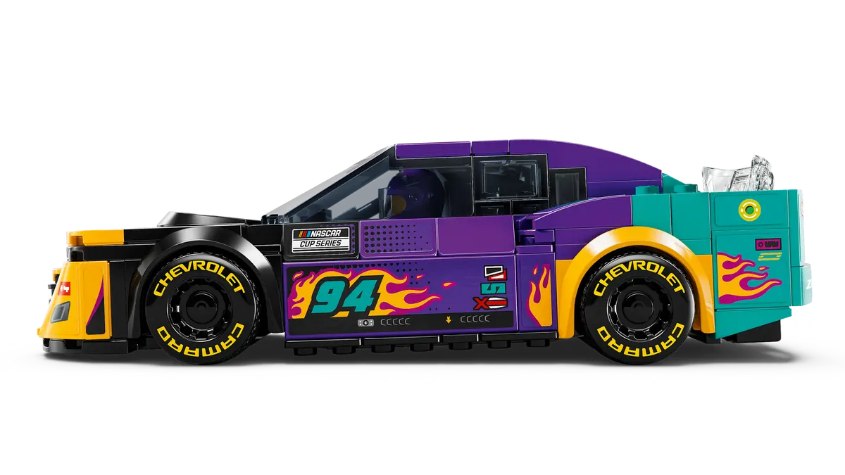 The LEGO® Speed Champions NASCAR Next Gen Chevrolet Camaro ZL1 (76935) is a 328‑piece set designed for builders aged 9 and up. This model captures the high-speed spirit of NASCAR with realistic features like a rear spoiler, front grille, hood, and detailed interior including a roll cage, dashboard, gear shift, and fire extinguisher. The set also includes a NASCAR driver minifigure wearing a helmet.