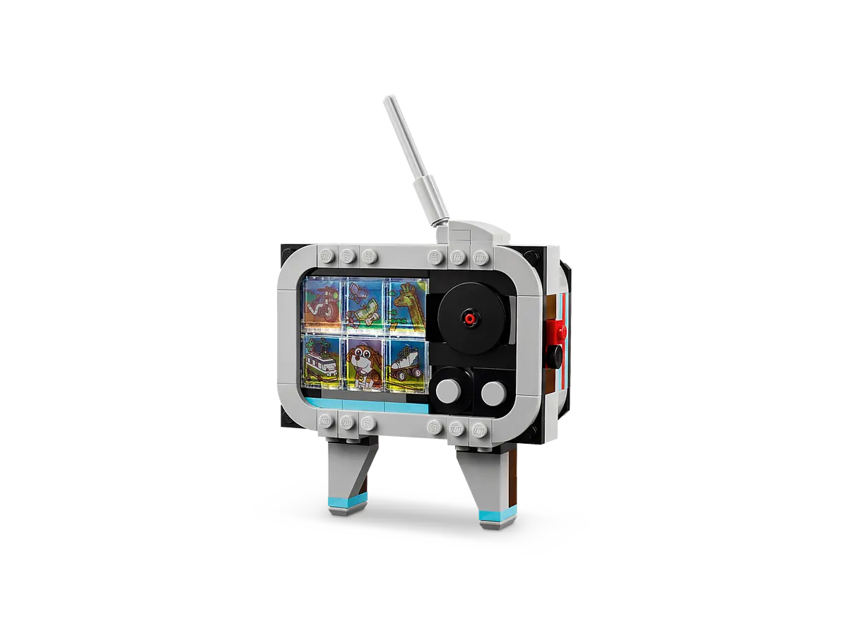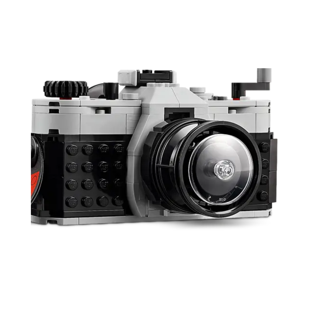 The LEGO® Creator 3‑in‑1 Retro Camera (31147) is a 261‑piece set released in 2024 for builders aged 8 and up. It lets you build a vintage-style camera with a moving lens, buttons to “take a photo,” and an opening back to load a brick-built piece of film. The set also includes a textile strap so you can carry it, and 6 stickers to decorate “photos.” When you’re done, you can rebuild it into either a retro video camera or a retro TV with an antenna — all 3 models work great as display pieces.
