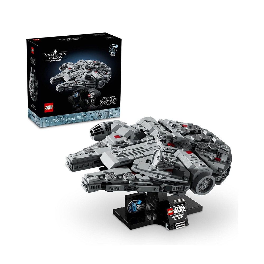 This mid-scale LEGO model includes a buildable stand with a nameplate and 25th Anniversary brick, allowing the Millennium Falcon to be displayed at a dynamic angle for a perfect home or office décor piece. Part of the LEGO Star Wars Starship Collection, this 921-piece set is ideal for fans who enjoy immersive building experiences, creative relaxation, and showcasing iconic spacecraft from a galaxy far, far away.