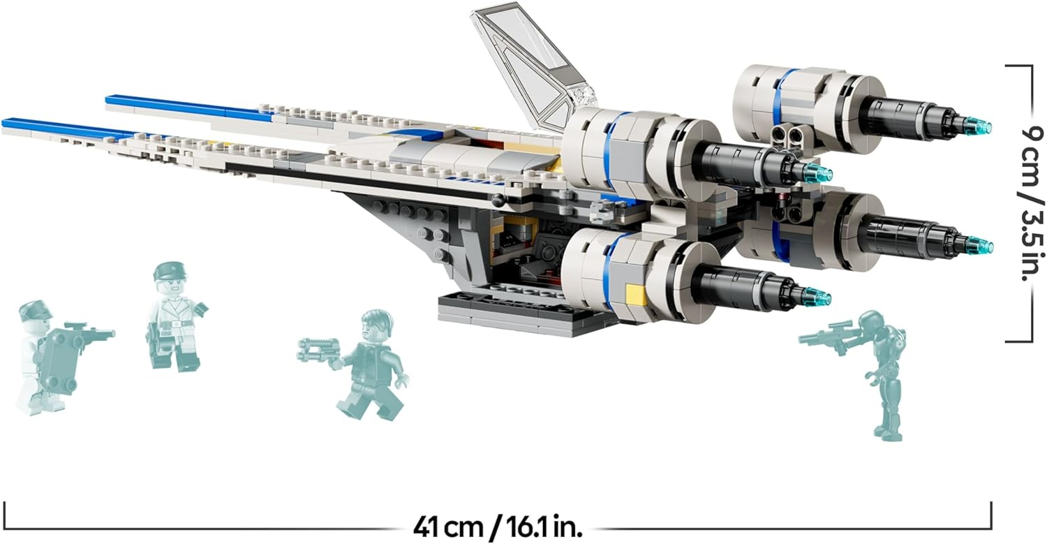 The LEGO® Star Wars Rebel U-Wing Starfighter brings an iconic Rebel Alliance spacecraft to life, allowing Star Wars fans to recreate thrilling missions from the galaxy far, far away. Packed with authentic details, this buildable starfighter features a signature swing-wing function that seamlessly transforms the wings from landing mode into a dramatic ‘V’ formation for flight, delivering an immersive and dynamic building experience.