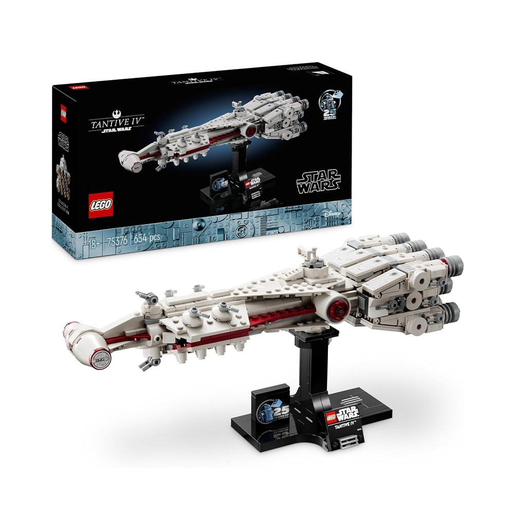 Part of the LEGO Star Wars Starship Collection, the Tantive IV features authentic details including its elongated hull design, 11 rear engines, and integrated turbolasers. Built primarily for display, the model sits on a sturdy brick-built stand complete with a printed nameplate and a special LEGO Star Wars 25th Anniversary brick, transforming it into a premium décor piece for a home or office. With digital 3D building support via the LEGO Builder app, this 654-piece set offers a rewarding and immersive building experience for Star Wars fans and memorabilia collectors alike.