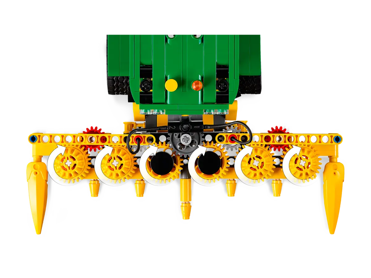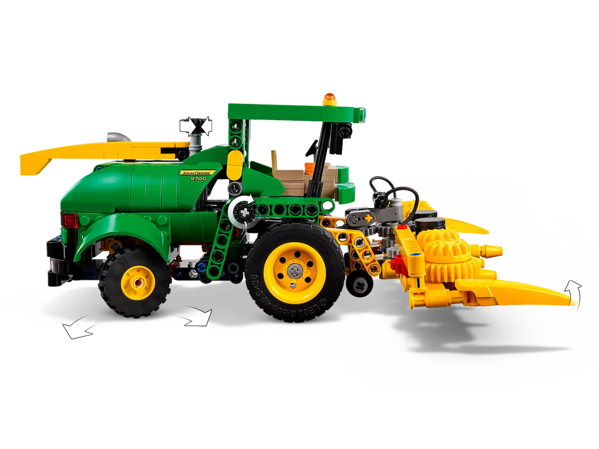 The LEGO® Technic™ John Deere 9700 Forage Harvester (42168) is a 559-piece set designed for builders aged 9 and up. Modeled after the John Deere 9700, this set offers an immersive building experience with realistic features such as 360° steering, a movable forage header, and rotating cutting discs that mimic the actions of a real harvester. The set also includes a hitch to connect to compatible trailers, enhancing playability. While the model captures the essence of the real machine, some enthusiasts have noted that the use of road tires instead of agricultural ones may affect its authenticity. Nevertheless, it remains a delightful addition to any Technic collection.