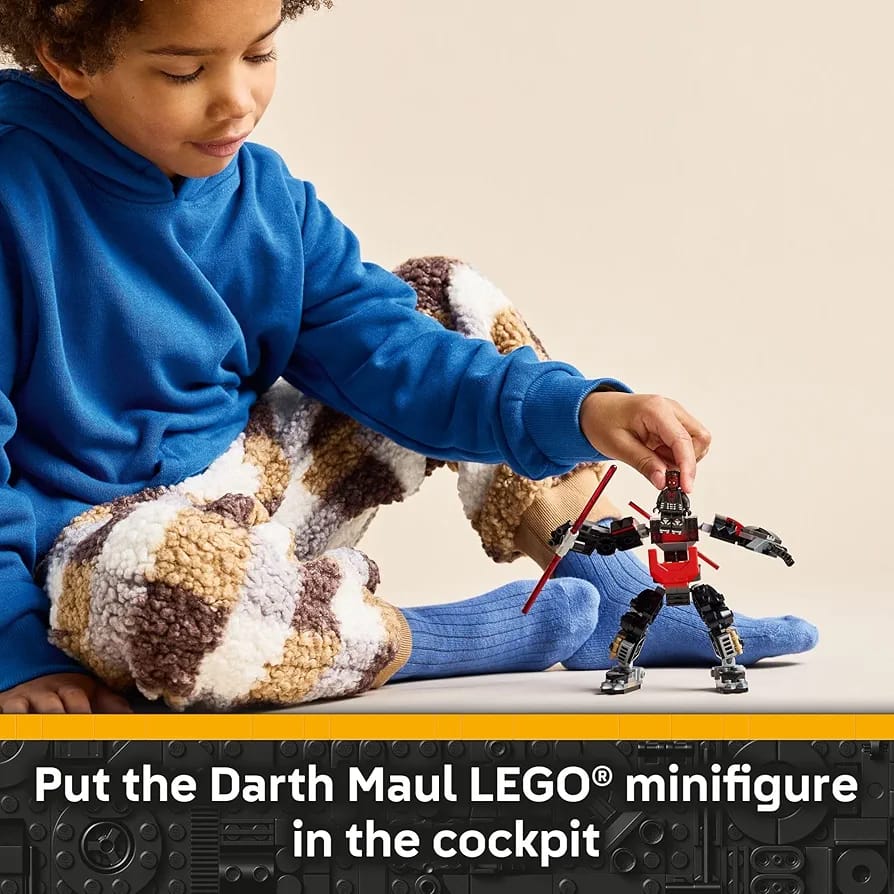 The set includes a Darth Maul™ LEGO minifigure that fits inside the mech’s opening cockpit, along with his iconic double-bladed red Lightsaber. The mech itself wields a large, brick-built double-bladed Lightsaber for epic clashes, and a small probe droid attaches to the back for added Star Wars detail. Compact yet striking, this mech is ideal for both hands-on play and display, making it a great introduction to LEGO® Star Wars™ action builds.