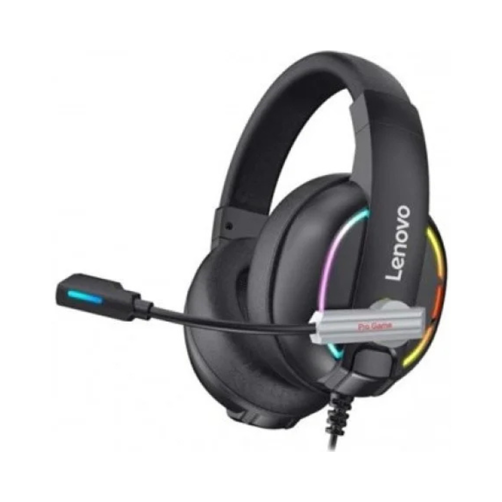 The Lenovo HU75 RGB Gaming Headphone is a wired RGB headset designed for gamers seeking immersive sound and stylish aesthetics. Featuring dynamic RGB lighting, a high-precision microphone, and comfortable over-ear cushions, it provides excellent audio performance and long-lasting comfort for extended gaming sessions.