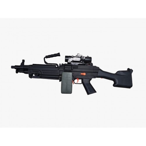 The M249 Machine Gun Gel Blaster (BLG-004 / SAW M249 V4) is a full-size, LMG-style gel-ball blaster modelled on the M249 squad automatic weapon. It is a magazine-fed, electric gel blaster designed for suppression-style play with very large capacity magazines (commonly 800–1000 gel balls). Typical builds use nylon/ABS construction with some metal components (carry handle, internal reinforcements) and are marketed for hobby skirmish play, range practice and display.