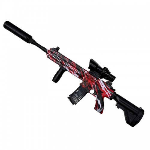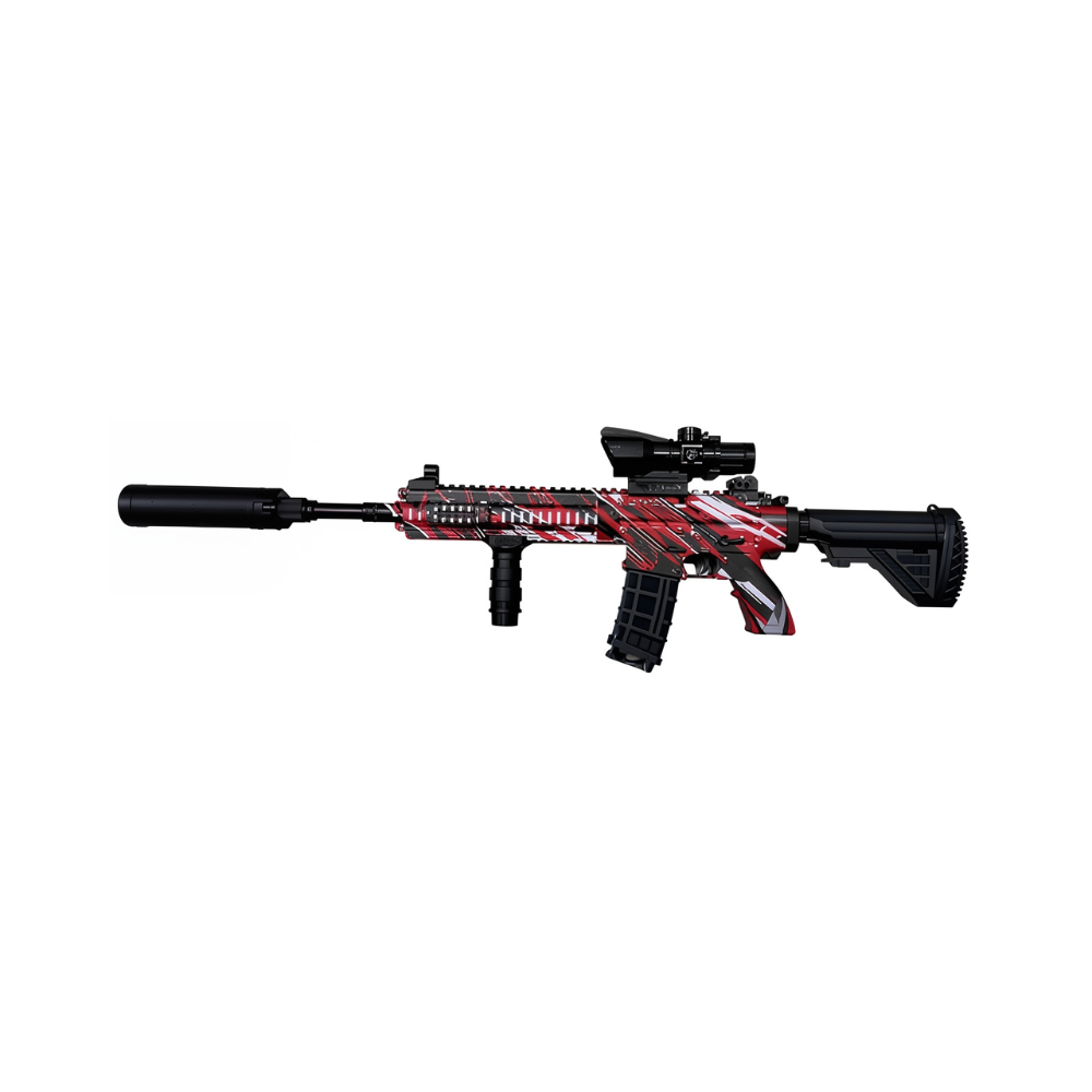 The M416 Gel Blaster Red Skin (188-59) is a full-size electric M4/M416-style gel-ball blaster finished with a red skin. Designed for recreational skirmish play and outdoor target practice, it typically offers automatic and selective-fire modes, large-capacity magazine/drum options, and an ABS/nylon polymer body with optional reinforced internals. The blaster uses pre-soaked hydrogel beads (7–8 mm) as ammunition.