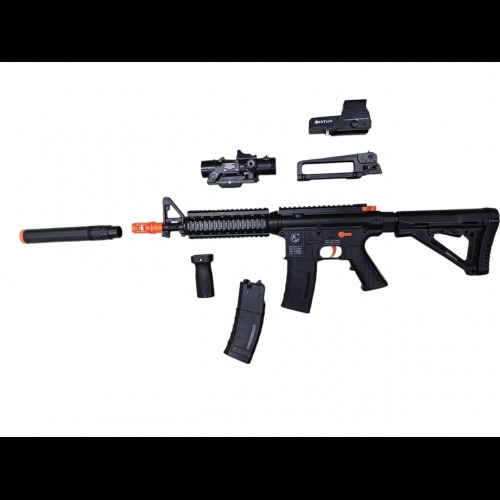The M4A1 Gel Blaster With Attachments is a full-size, electric M4/M4A1-style gel-ball blaster supplied as a kit with common tactical attachments. Designed for recreational skirmish play, backyard target practice and display, this variant blends the classic M4A1 silhouette with practical accessory rails for optics, grips and lights. The blaster uses pre-soaked hydrogel beads (7–8 mm) and is intended for supervised hobby use.