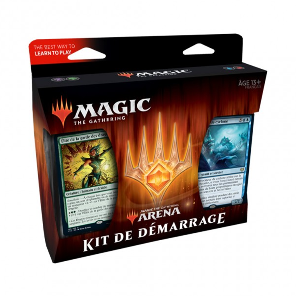 The Magic The Gathering : Kit de démarrage Arena 2021 is a French-language starter set designed to introduce players to the world of Magic: The Gathering. The kit includes two ready-to-play 60-card Magic decks (basic lands included), each containing one traditional foil card—Mind Flayer and Oran-Rief Ooze (Amazon-exclusive foils for 2021). Players also receive a Play Guide booklet, two deck storage boxes, and an MTG Arena Code Card to unlock both decks for online play, allowing two people to enjoy Magic together.