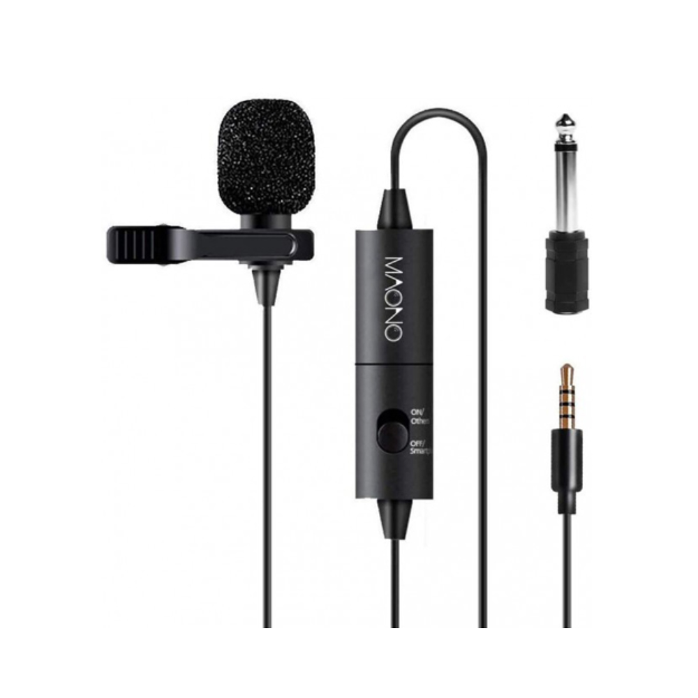 The Maono AU-100 Lavalier Microphone is a high-quality clip-on microphone designed for content creators, vloggers, livestreamers, podcasters, teachers, and interviewers who need clear, professional audio. Featuring an **omnidirectional condenser capsule**, it captures sound from all directions for natural and crisp voice recording. With a **6-meter long cable**, it provides flexibility during filming or recording, while the included 3.5 mm TRRS plug and 6.35 mm adapter make it compatible with smartphones, cameras, computers, and audio mixers. Lightweight, portable, and easy to clip onto clothing, the AU-100 is ideal for anyone seeking **reliable audio performance without complicated setup**.