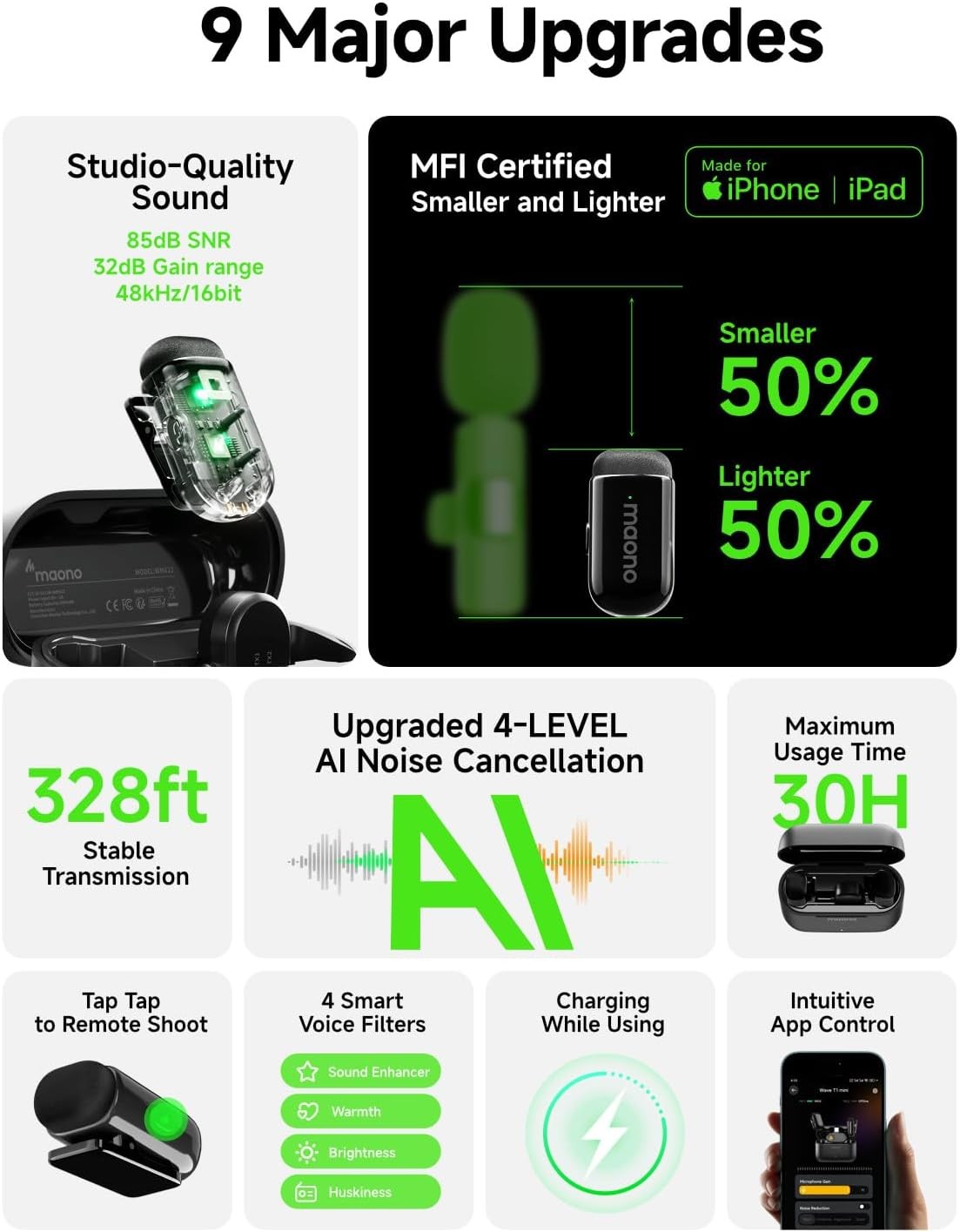 MFi Certified, Secure Recording: Apple-certified iPhone microphone for safety, enjoy seamless compatibility with iOS systems and secure, interference-free premium audio signal transmission for a reliable recording experience, ensuring no risk of overheating, data loss, or damage to your devices