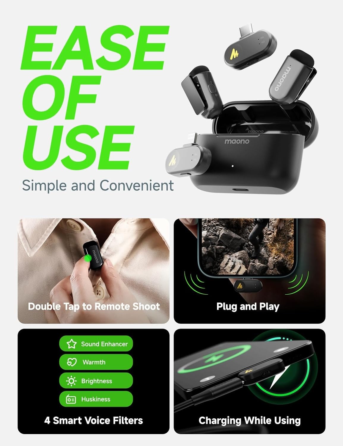 AI Voice Filters and Effects: With the Maono Link app, you can switch between 4 unique voice filters and 4 voice-altering effects for creative, tailored audio. Additionally, adjust the noise reduction level and sound gain in real time for a perfectly customized recording experience