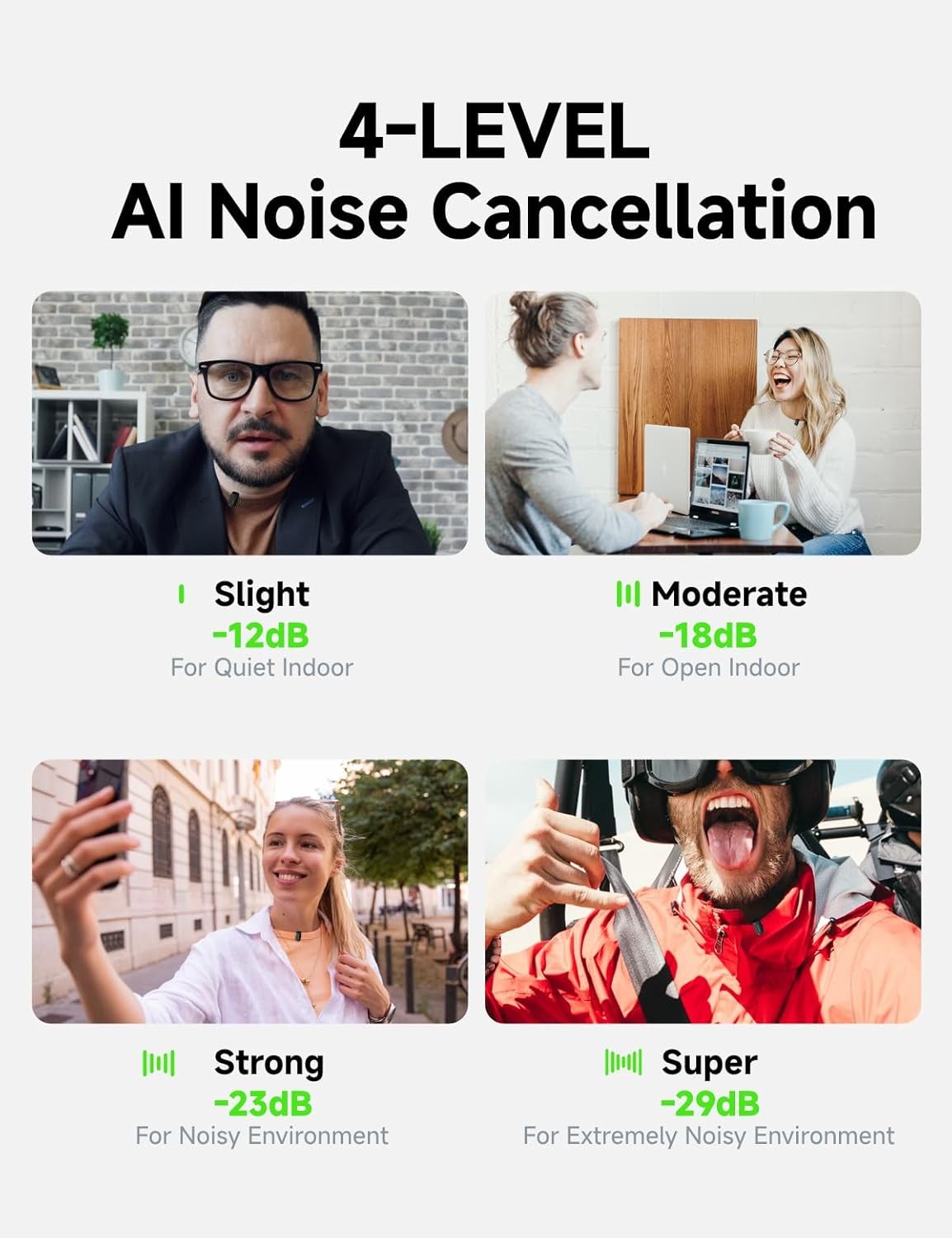 4-Level AI Noise Cancellation: The Wave T1 mini clip on mic supports one-click to turn on/off the noise reduction, combined with 32dB gain control and Smart Automatic Limiting function, ensure crystal-clear and rich recordings in noisy environment