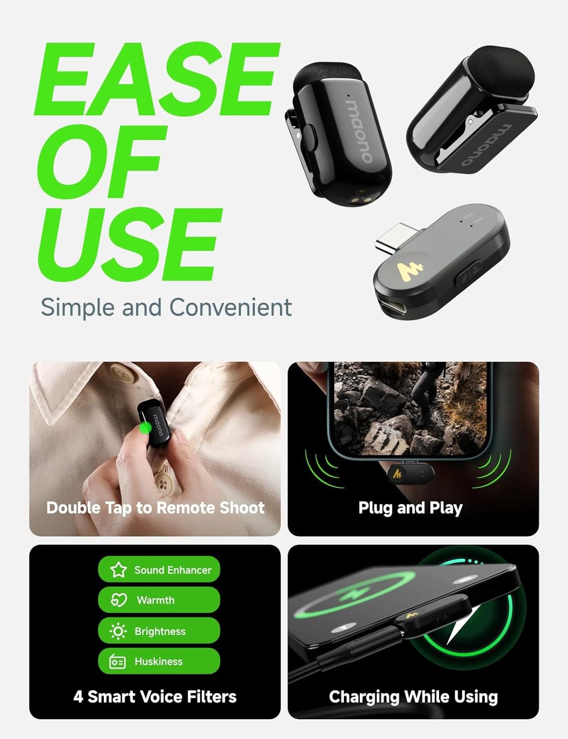 Mini Mic, Pro Sound: The Maono Wave T1 mini microphone is ultra-compact and portable while delivering 48kHz/16bit studio-quality sound. Effortlessly capture rich, detailed audio for the perfect recording experience