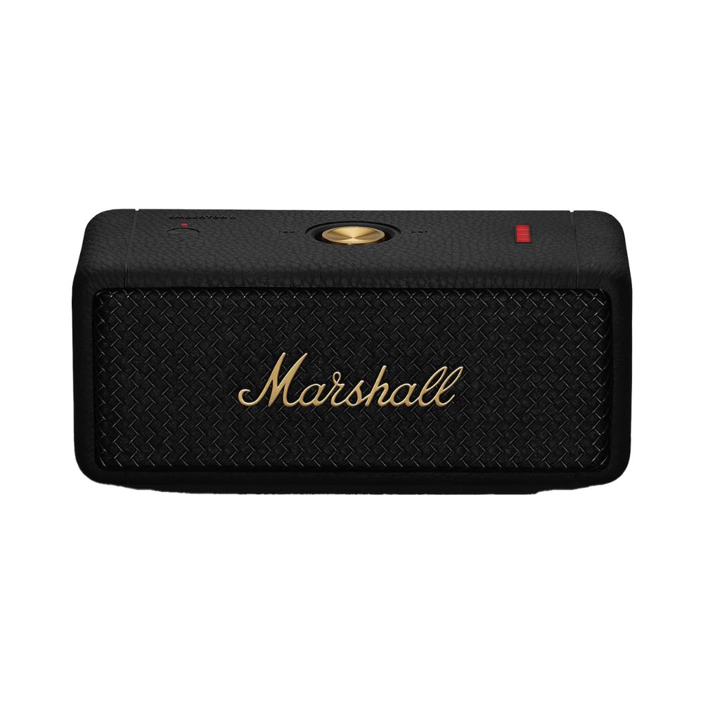The Marshall Emberton II Portable Bluetooth Speaker – Black & Brass is a compact, rugged, and stylish speaker designed for on-the-go listening. It delivers Marshall’s signature rich and clear audio through multidirectional True Stereophonic sound that spreads evenly around you, making every spot a great listening position. Featuring reliable Bluetooth 5.0 connectivity, robust waterproofing, and long battery life, the Emberton combines portable convenience with quality performance, perfect for travel, outdoor activities, and everyday use. Quick-charge support gives you extra playtime with just a short boost, and intuitive top controls make playback effortless.