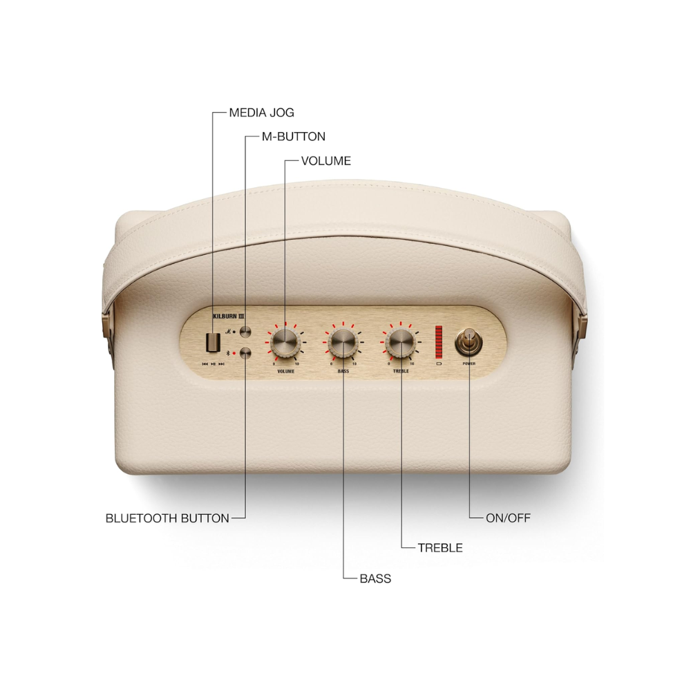 The Marshall Kilburn III Portable Bluetooth Speaker delivers powerful, room-filling sound in an iconic, road-ready design inspired by Marshall’s legendary guitar amplifiers. Built for both home and outdoor listening, it features True Stereophonic 360° sound that provides rich bass, balanced mids, and crisp highs from every angle. With long-lasting battery life of over 50 hours, Kilburn III is perfect for extended listening sessions, parties, or travel without constantly worrying about recharging. Its durable, splash- and dust-resistant construction makes it reliable for everyday use, while Bluetooth 5.3 ensures stable, high-quality wireless connectivity. Classic tactile control knobs on the top panel allow easy adjustment of volume, bass, and treble, blending vintage style with modern convenience. Portable, powerful, and unmistakably Marshall, the Kilburn III is designed for music lovers who want bold sound and timeless style wherever they go.