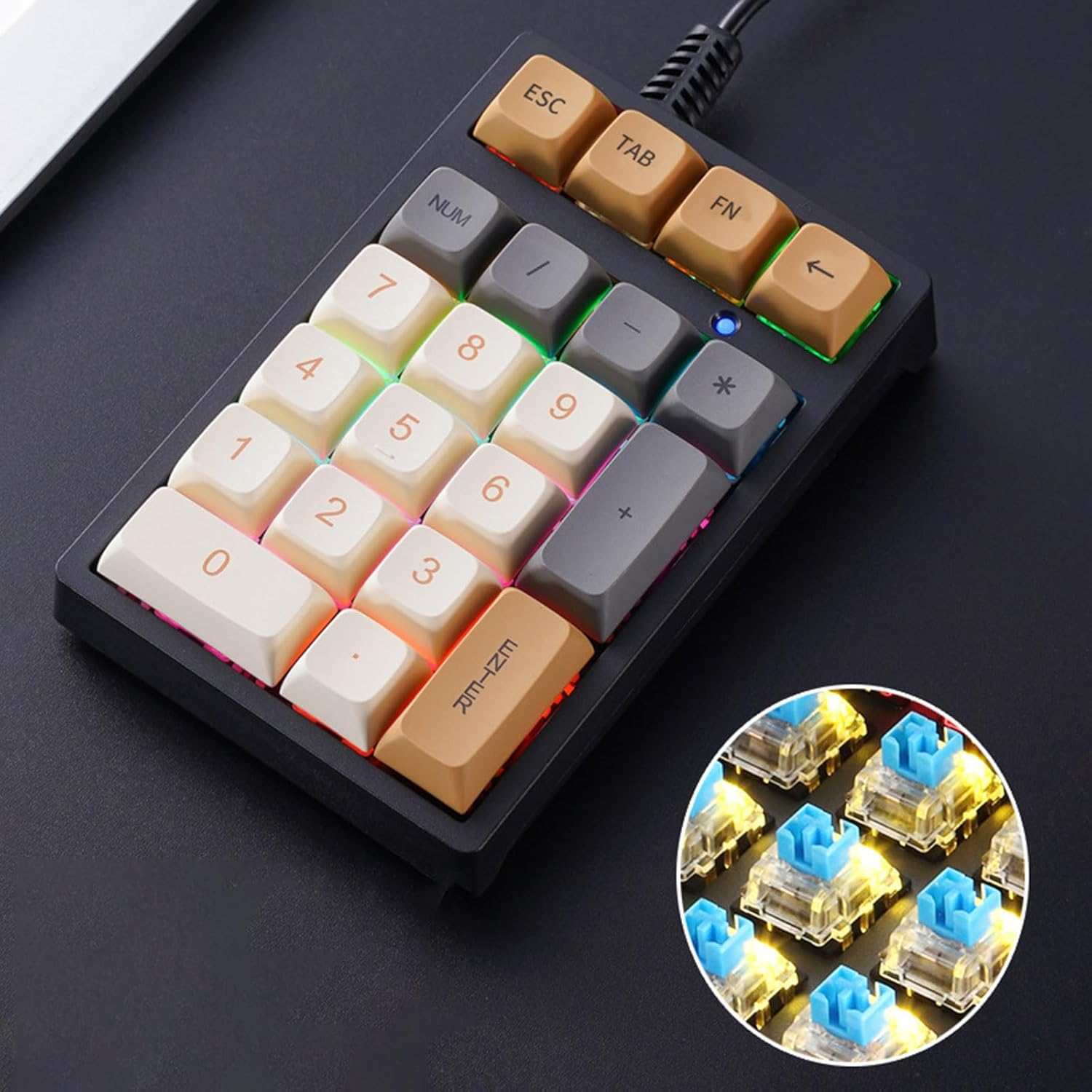 The Mechanical Wired Numeric Keypad is designed for fast, accurate, and reliable number input, making it ideal for notebook users, checkout counters, banks, and stock exchange environments. Featuring durable PBT dye-sublimation keycaps with large, easy-to-read characters, it delivers sensitive and comfortable mechanical typing while reducing input errors. Multi-color lighting effects add a unique visual touch and can be easily switched to match your setup or working environment. With a 1.5-meter USB cable and true plug-and-play operation, this keypad requires no drivers and is ready to use instantly for efficient everyday work.