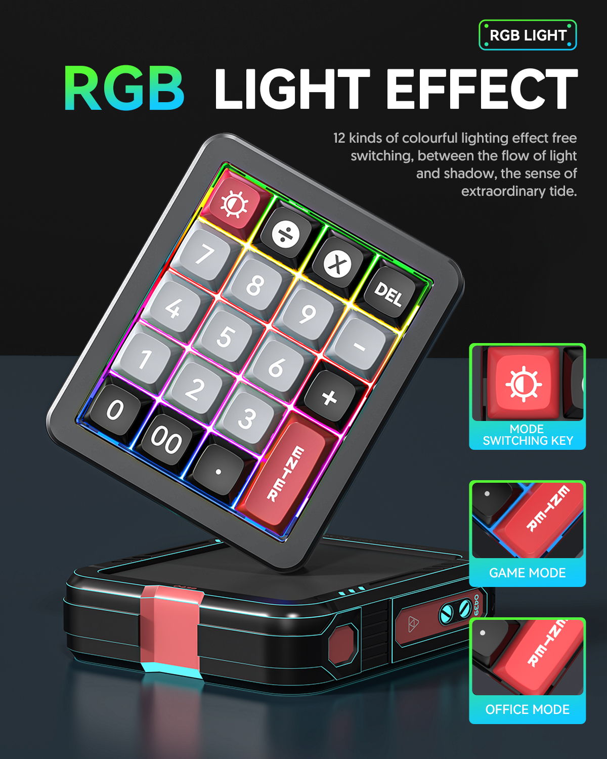 Built with a premium aluminum alloy body and ABS keycaps, the K812 combines durability with a solid, high-quality feel. Its RGB lighting effects add a vibrant and stylish touch to your setup, while the ergonomic, anti-slip design ensures stability and comfort during extended use. Plug-and-play functionality makes it easy to use, and the keypad supports macro definition through dedicated software on Windows systems.