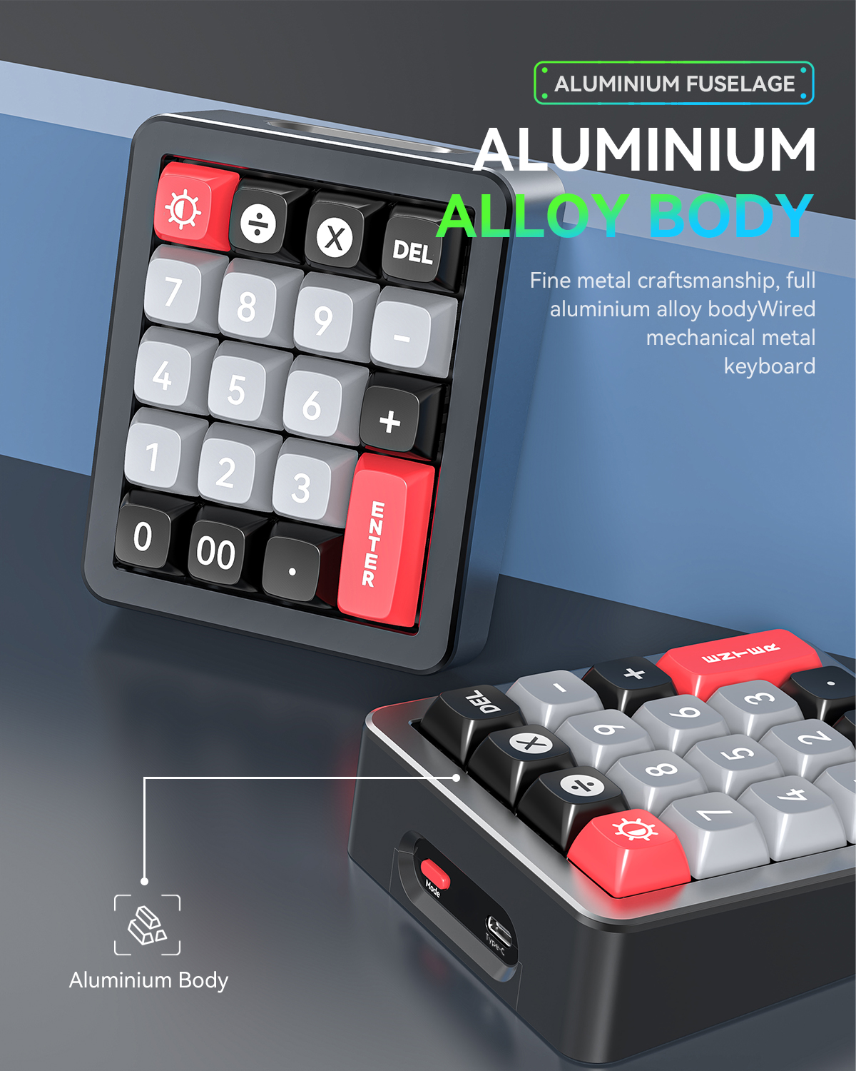 | Material | ABS Keycaps, Aluminum Alloy Body |