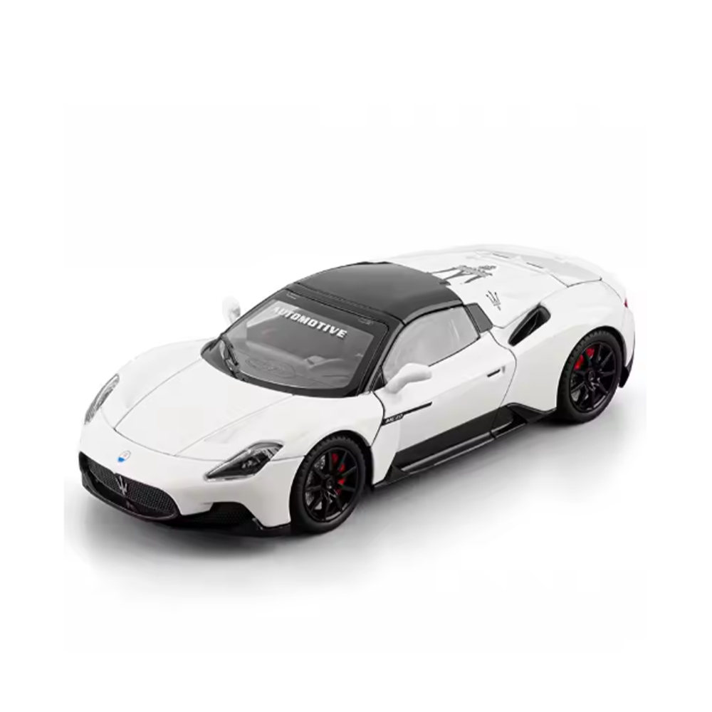 The 1:24 Maserati MC20 Model Car (White) is a beautifully crafted miniature designed for collectors, enthusiasts, and young car lovers. It features realistic detailing with multiple functional parts — both side doors open, the front cover lifts, and the trunk opens for an authentic supercar experience.