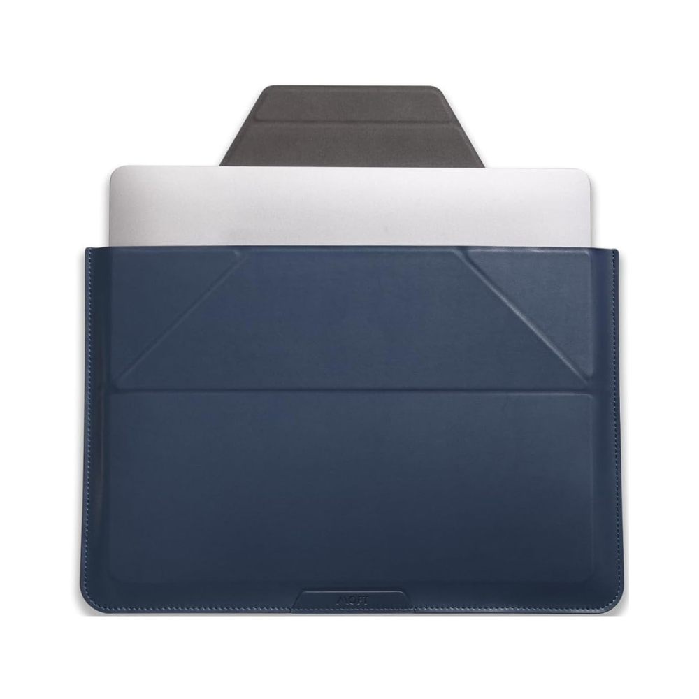 The MOFT Carry Sleeve (MB002-1-16-DEBU) is a versatile 3-in-1 accessory for 13.3″ MacBook Air and 14″ laptops. It functions as a protective sleeve, foldable laptop stand, and expandable storage solution. The sleeve quickly converts into a dual-angle stand for ergonomic typing or viewing. Its internal pocket stores essentials like chargers, phones, and notebooks. Crafted with premium vegan leather and durable fiberglass, it combines style, practicality, and protection for daily use and travel.