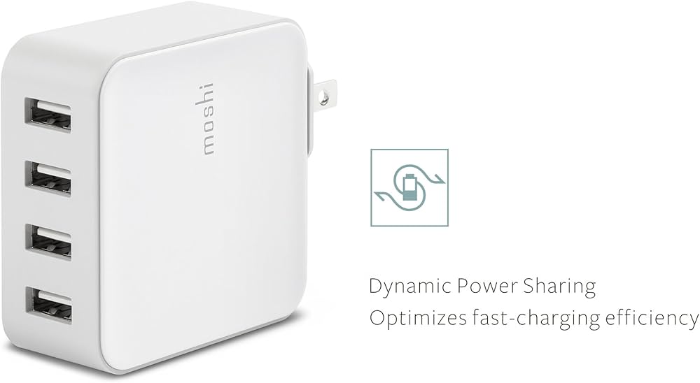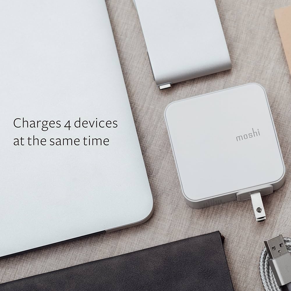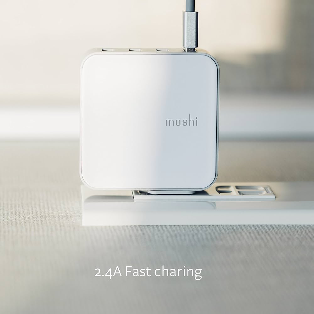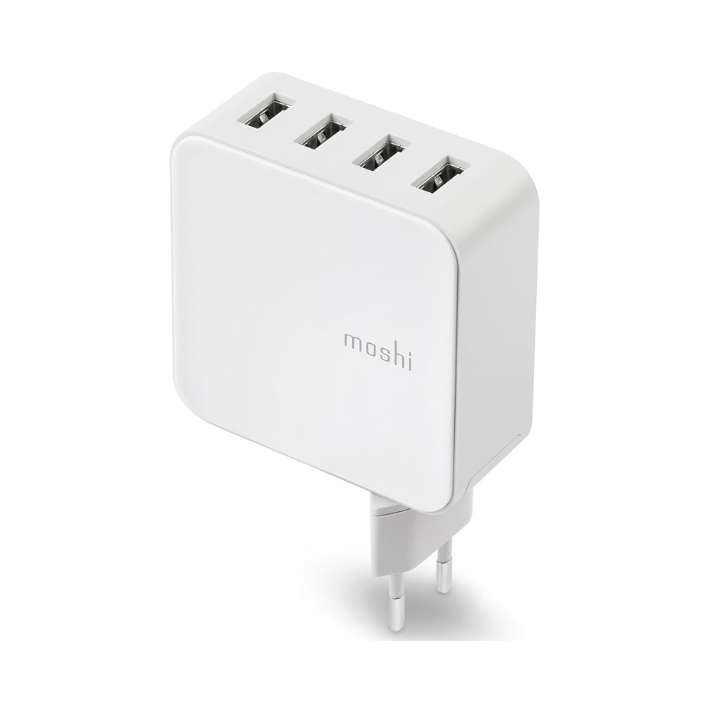 The Moshi ProGeo Indoor Mobile Charger is a versatile wall charger designed for safely powering multiple USB devices at once. Featuring 4 USB-A ports with intelligent power distribution, it delivers efficient charging for smartphones, tablets, headphones, and other USB-powered devices. Compact and energy-efficient, it meets Level VI energy standards and provides built-in protections against over-current, over-voltage, overheating, and short circuits.