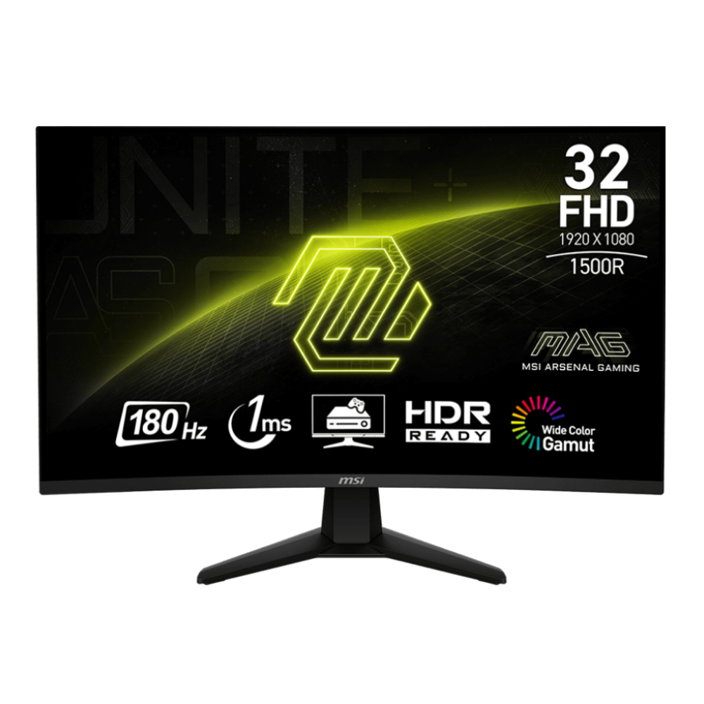 The MSI Gaming Monitor 32″ (MAG 32C6) is a large 32‑inch Full HD (1920×1080) gaming display built for immersive and smooth gameplay. Featuring a VA panel with a 180 Hz refresh rate and 1 ms (MPRT) response time, it delivers deep contrast, vibrant colors, and fluid motion. Adaptive-Sync support and ergonomic tilt adjustment make it perfect for competitive gaming and extended sessions.