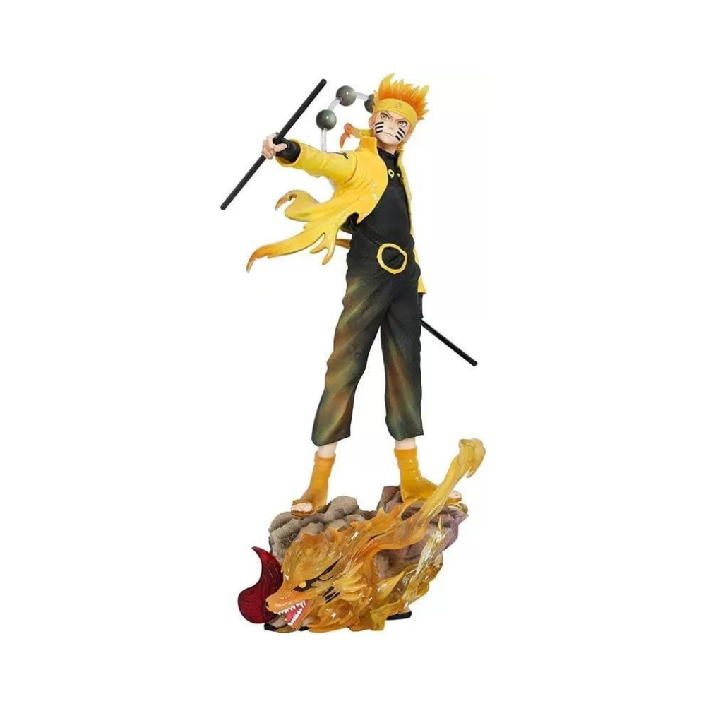 The Naruto Shippuden – Six Paths Sage Mode Naruto Figure is a detailed collectible statue inspired by the iconic characters from the Naruto Shippuden series. This impressive piece features Naruto in Nine-Tails form. Standing at approximately 38 cm tall, it’s crafted from high-quality PVC material and finished with vivid colors that bring the characters to life.