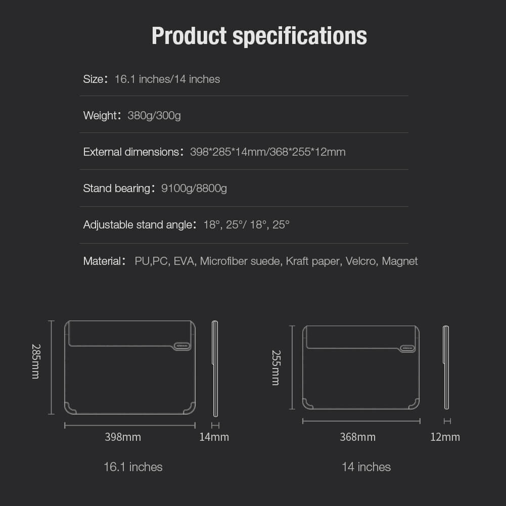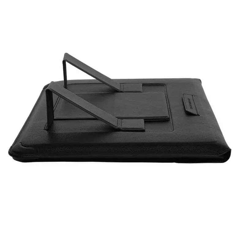 It is not only a storage bag, but also laptop stand and wrist rest. Adopt preferred PU, which is scratch-resistant and durable. Use sponge flannel lining inside for shock absorption. Equipped with magnetic stand to speed up the laptop cooling.