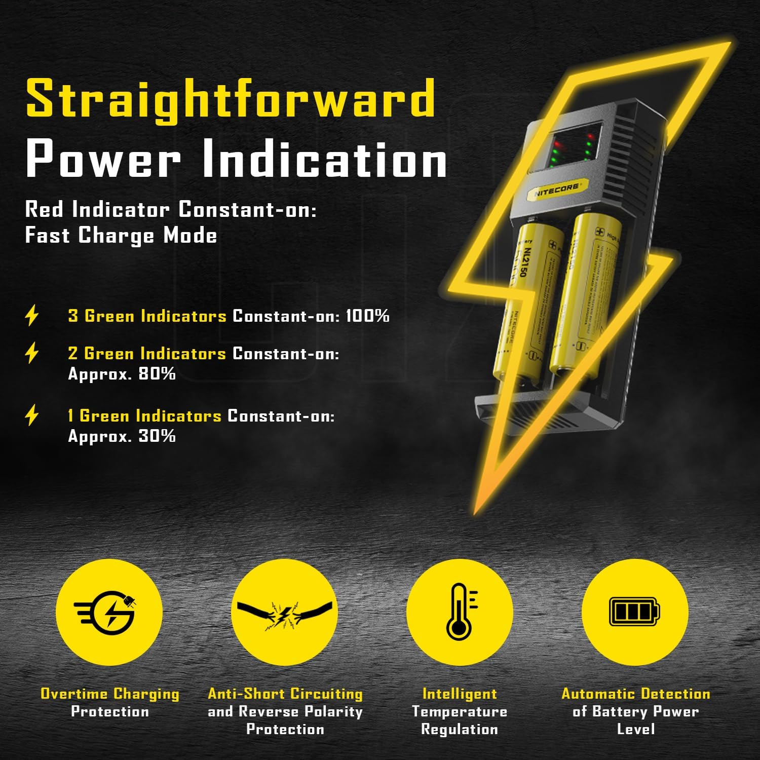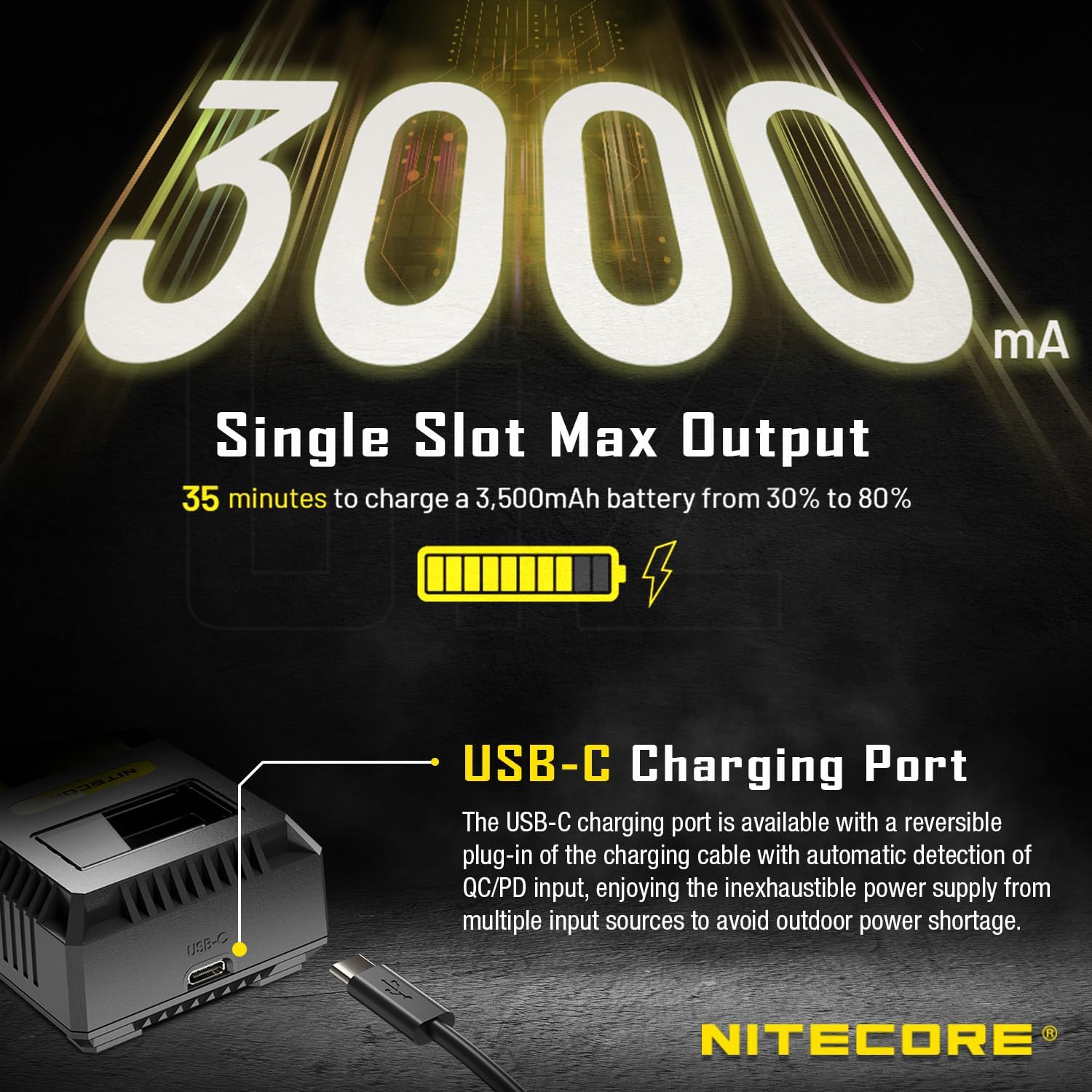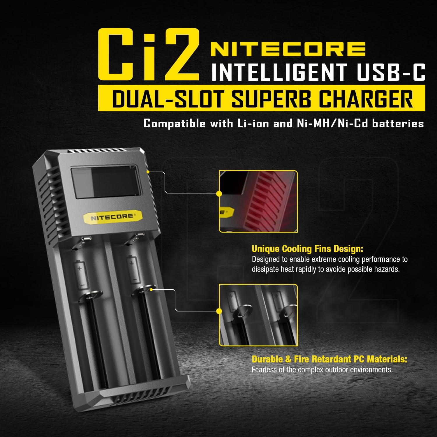 The Nitecore Ci2 Dual-Slot Charger is a compact, smart charger designed to rapidly charge a wide range of rechargeable batteries, including Li-ion and Ni-MH/Ni-Cd types. Featuring two independent charging slots, it automatically detects battery type and adjusts the charging parameters for optimal performance. With USB-C Quick Charge (QC) and Power Delivery (PD) support, the Ci2 delivers fast, safe, and efficient charging whether at home, in the office, or on the go. Its durable fire-retardant housing, energy-efficient design, and intuitive LED indicators make it an ideal companion for battery enthusiasts, professionals, and travelers who need reliable power on demand.