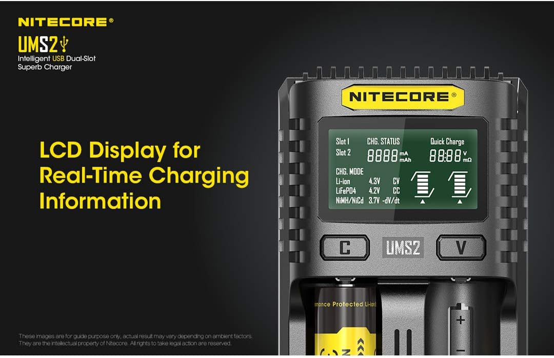 The Nitecore UMS2 Intelligent USB Dual-Slot Quick Battery Charger is a powerful and versatile smart charger designed for users who need fast, safe, and reliable charging for a wide range of rechargeable batteries. Featuring two independent charging slots, the UMS2 automatically detects battery chemistry and capacity, intelligently adjusting voltage and current for optimal performance. With support for Quick Charge 2.0, it delivers up to 3000mA in a single slot, significantly reducing charging time. The clear LCD display provides real-time information such as charging status, voltage, current, battery health, and internal resistance, giving users full visibility and control. Built-in multiple safety protections and broad battery compatibility make the UMS2 an excellent choice for flashlight enthusiasts, photographers, outdoor adventurers, and everyday users who rely on rechargeable batteries.