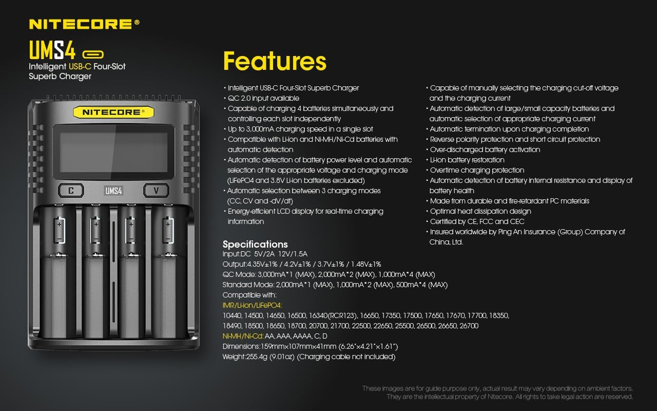 The Nitecore UMS4 Intelligent USB-C Four Slot Quick Battery Charger is a high-performance charging solution designed for users who demand speed, flexibility, and intelligent control. Built with four independent charging slots, the UMS4 supports a wide range of rechargeable batteries and delivers fast, efficient power management for everyday and professional use.