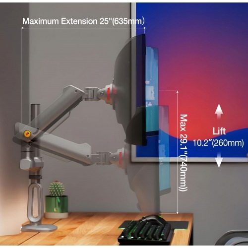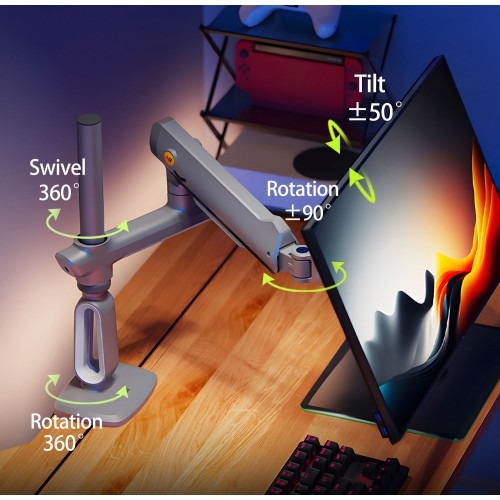 The North Bayou A7 Gaming Monitor Arm (27″-50″) is a versatile and ergonomic solution designed to support large monitors ranging from 27 to 50 inches. Ideal for gamers, content creators, and professionals, it allows full-motion adjustment for optimal viewing angles, helping reduce neck and eye strain while maximizing desk space. Its mechanical spring arm construction ensures stability and smooth movement for both flat and curved monitors.