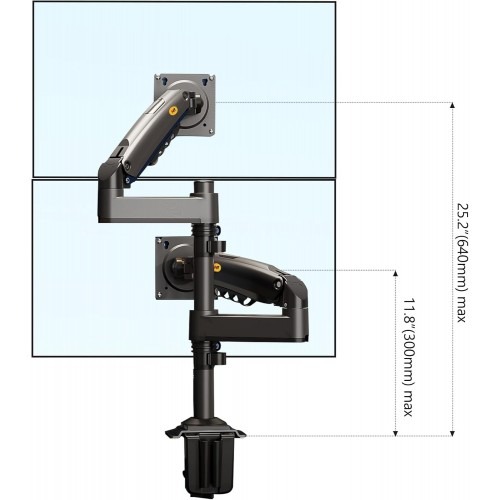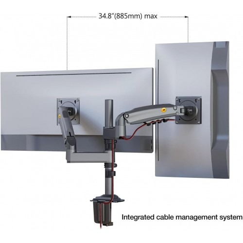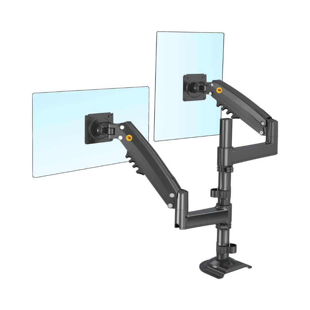 The North Bayou H180 Dual Monitor Arm Desk Mount (17″-27″) is a robust and ergonomic solution for dual-screen setups. Designed to improve posture and maximize desk space, this mount supports smooth height, tilt, swivel, and rotation adjustments, ensuring an optimal viewing experience. Its durable construction and integrated cable management system make it ideal for both professional and gaming environments.